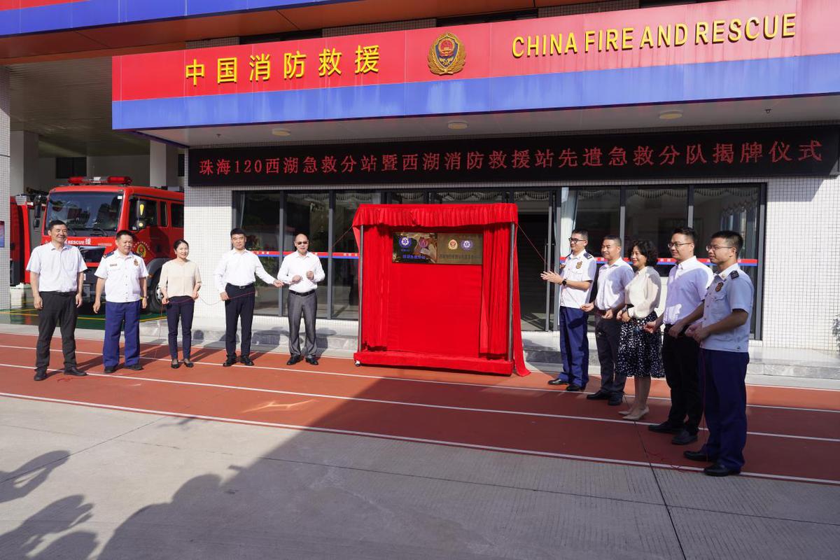为高效协同开展消防救援和医疗救护工作,为金湾区居民提供优质高效的救援服务。11月3日上午,广东省人民医院珠海医院(金湾中心医院)与金湾区西湖消防救援站联动的“珠海120西湖急救分站”暨“西湖消防救援站先遣急救分队”正式揭牌运行,这是西区首个依托消防站设立的“消防+急救”的联动急救分站,开启了消防救援和医疗急救同步响应、协同处置的“一体化”应急救援联勤联战新模式。