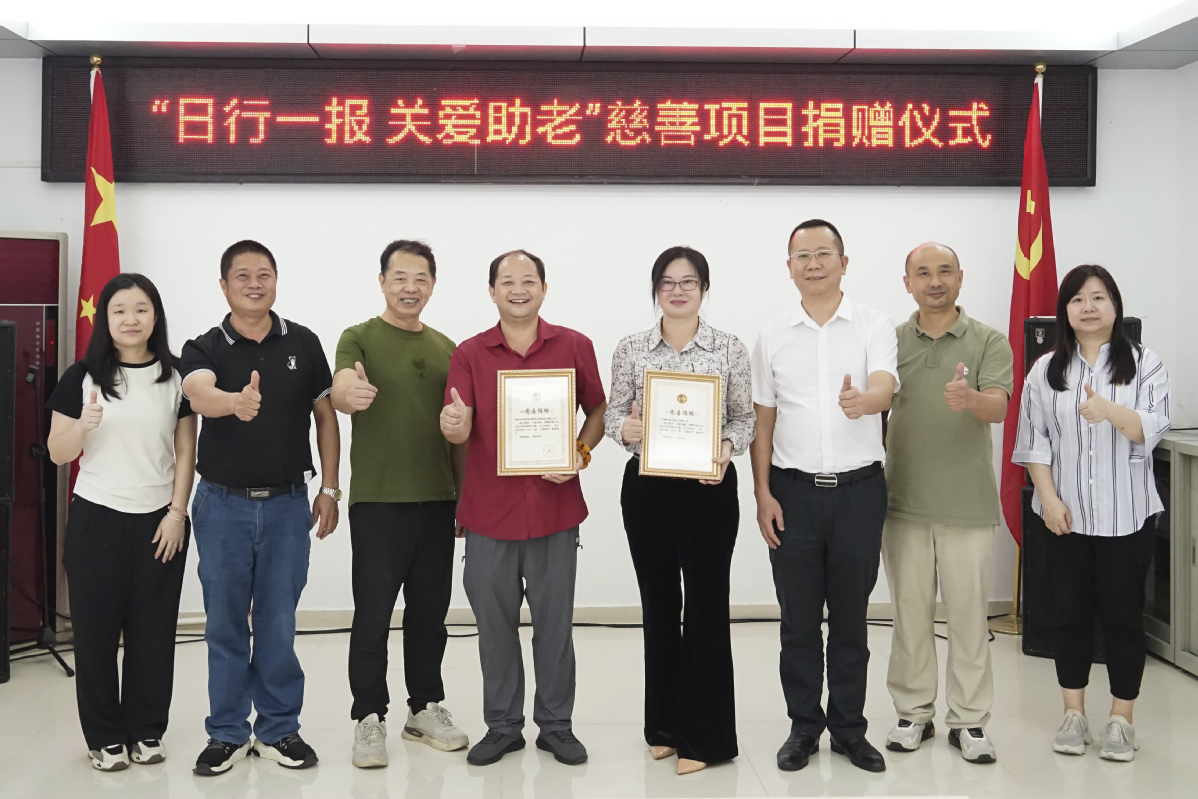 11月12日下午,“日行一报 关爱助老”慈善项目捐赠仪式在珠海市慈善总会举行。两家爱心企业向珠海市慈善总会合计捐赠11520元,用于支持开展“日行一报 关爱助老”慈善项目,将为40位社区老兵、困难长者订阅2024年全年《珠江晚报》。