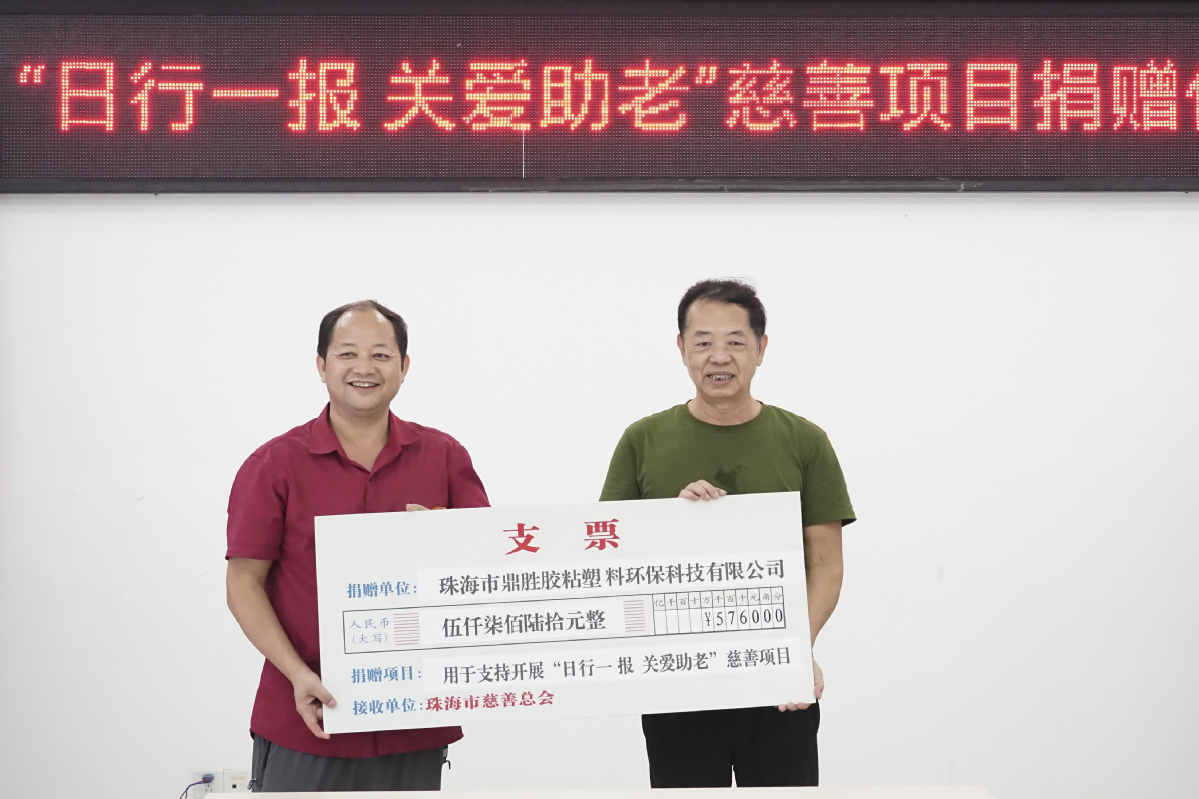 活动现场,广东瑞联商用家具有限公司、珠海市鼎胜胶粘塑料环保科技有限公司分别向市慈善总会转交5760元的善款支票,市慈善总会相关负责人为两家爱心企业颁发了捐赠证书。“老兵为我们国家的和平稳定和发展繁荣作出了巨大贡献,希望用我们力所能及的善举回报他们的付出,通过赠阅《珠江晚报》为社区老兵和困难长者提供更多的‘精神食粮’,让他们可以及时了解党和政府的各项惠民政策,感受社会关爱,传递正能量。”珠海市鼎胜胶粘塑料环保科技有限公司董事长张苏成表示。