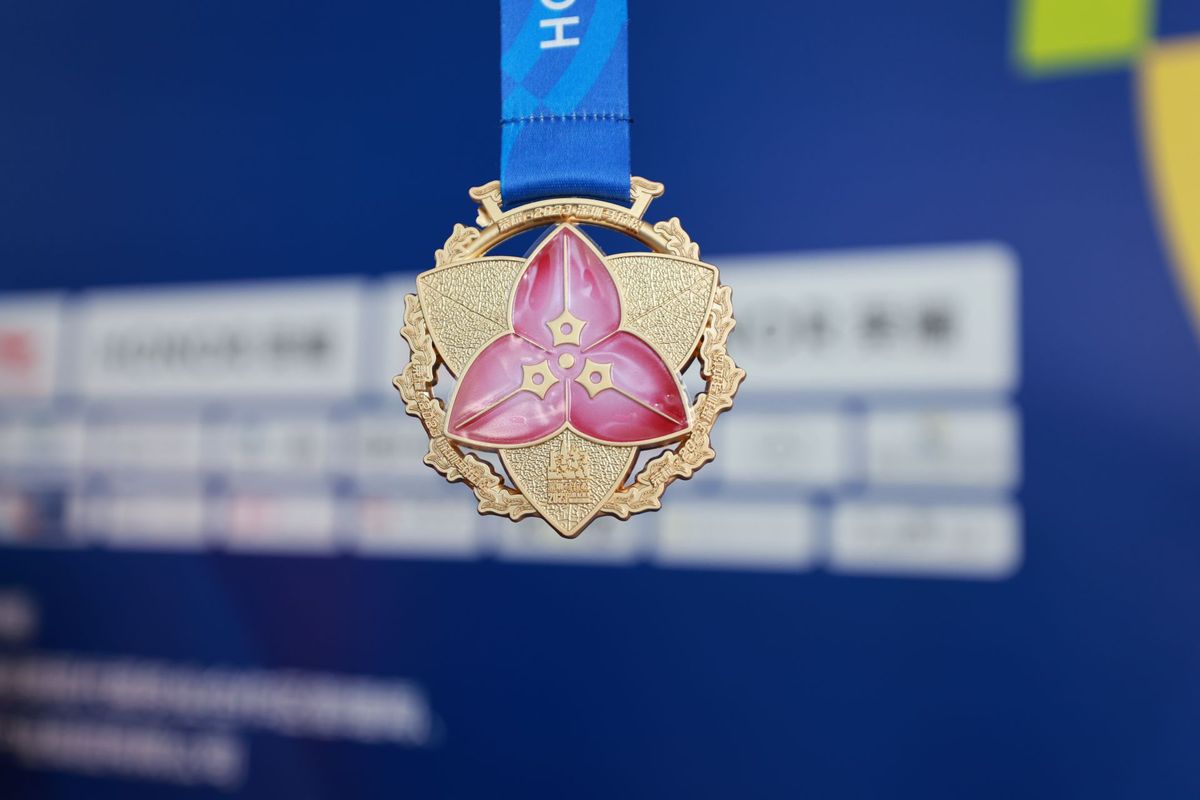本届赛事的完赛奖牌为香槟金色,奖牌正面镌刻着深圳市花——簕杜鹃,以它的花开不谢、热情和毅力,激励每一位跑者顽强拼搏、笃定执着。奖牌反面则印下了本届赛事的长度42.195公里和日期12月3日,让这个燃烧着热血的日子永远被铭记。