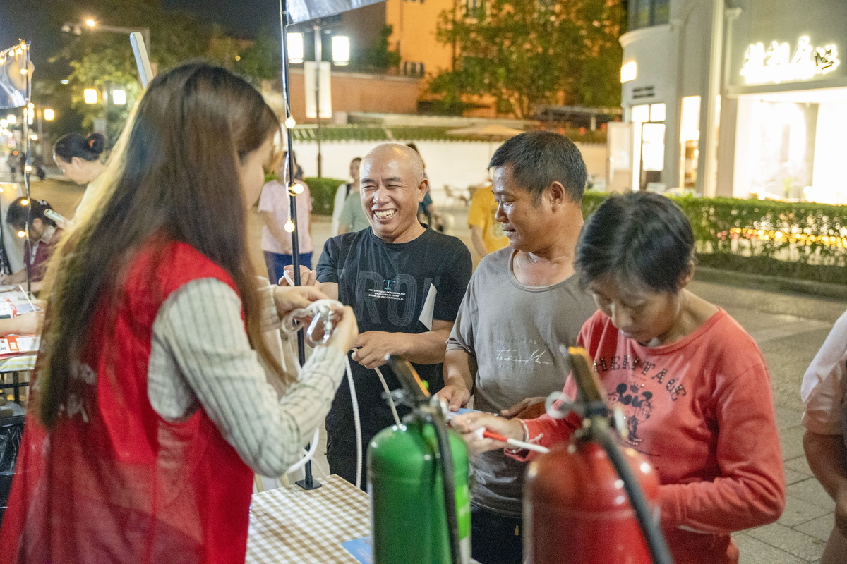 活动现场人流攒动、气氛热烈。“消防进社区·共筑防火墙”“电动车消防安全,防患于未‘燃’”和“全民学消防·安全千万家”三个主题摊位有序排列,通过科普志愿者讲解、发放消防知识科普宣传资料等形式,提高居民学习消防知识的热情,达到宣传普及消防知识的目的。现场还设置了消防体验活动,居民们在各种丰富有趣的体验中,不仅了解了火灾的危害、火灾的预防以及火灾发生时的应急措施,还深入学习到用火、用电、用气的安全和低碳节能等知识。