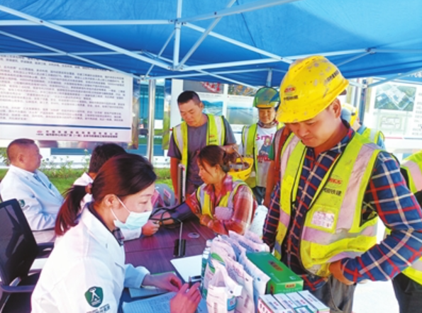 11月28日上午,珠海市关爱协会党支部联合多家医药企业,组织20多名医护人员赴中国铁建港航局集团有限公司城市新中心标准厂房工程项目部,共同开展“走基层·送健康”大型送医送药进工地活动,为一线建筑工人们送去慰问和关怀。