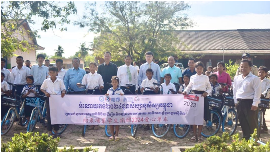 柬埔寨“爱心自行车”项目由中国乡村发展基金会发起,该项目旨在将闲置自行车资源再利用,为发展中国家孩子们的短途出行提供帮助。在此之前的2022年,双方携手合作,已将1000辆“爱心自行车”捐赠到柬埔寨磅湛省、磅清扬省、茶胶省和马德望省的67所乡村学校。这次是中柬两个慈善捐助组织为柬埔寨学生提供“爱心自行车”进行的第二次合作。