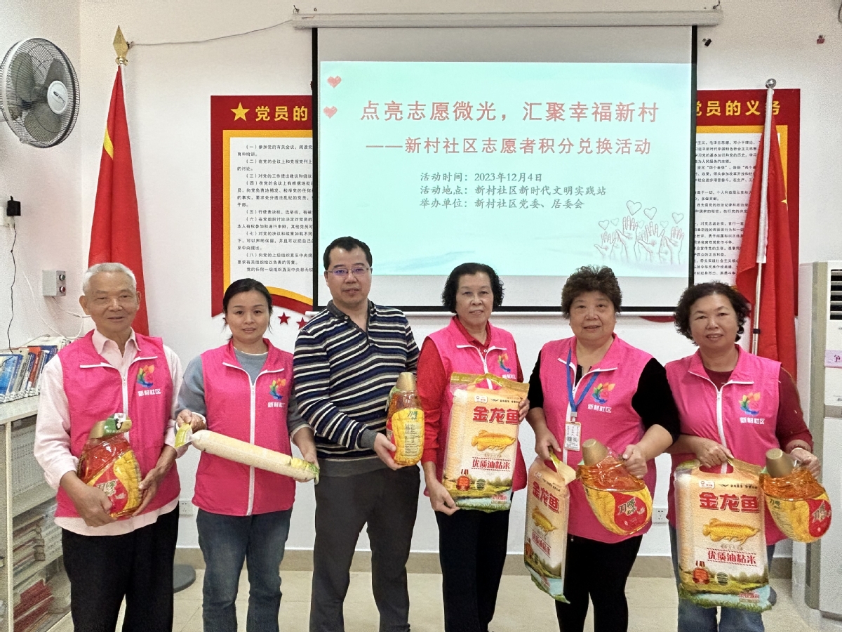 在国际志愿者日来临之际,为弘扬“奉献、友爱、互助、进步”的志愿者精神,提升志愿者们的身份认同感和社区归属感,12月4日下午,香洲区翠香街道新村社区在新时代文明实践中开展“点亮志愿微光,汇聚幸福新村”志愿者积分兑换活动。94名志愿者欢聚一堂,共叙志愿初心。