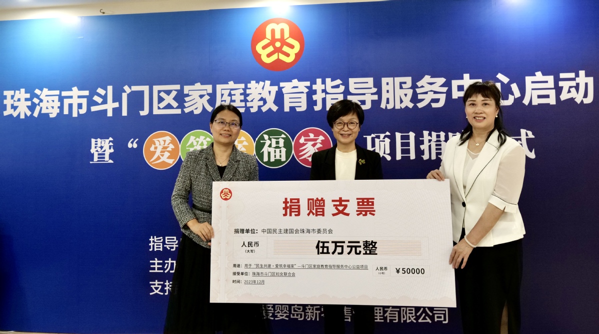 活动现场,民建珠海市委会捐赠爱心资金5万元,用于完善斗门区家庭教育指导服务中心设施和宣传阵地建设。珠海市爱婴岛新零售管理有限公司捐赠爱心资金12万元,用于启动爱婴岛·爱筑幸福家——斗门区家庭教育发展公益项目。市家庭教育指导中心向斗门区家庭教育指导服务中心赠送书籍100册。此外,成立家庭教育讲师团是斗门区家庭教育指导服务中心的重要建设内容,因此现场还为斗门区第二批家庭教育讲师团的八位讲师颁发聘书。