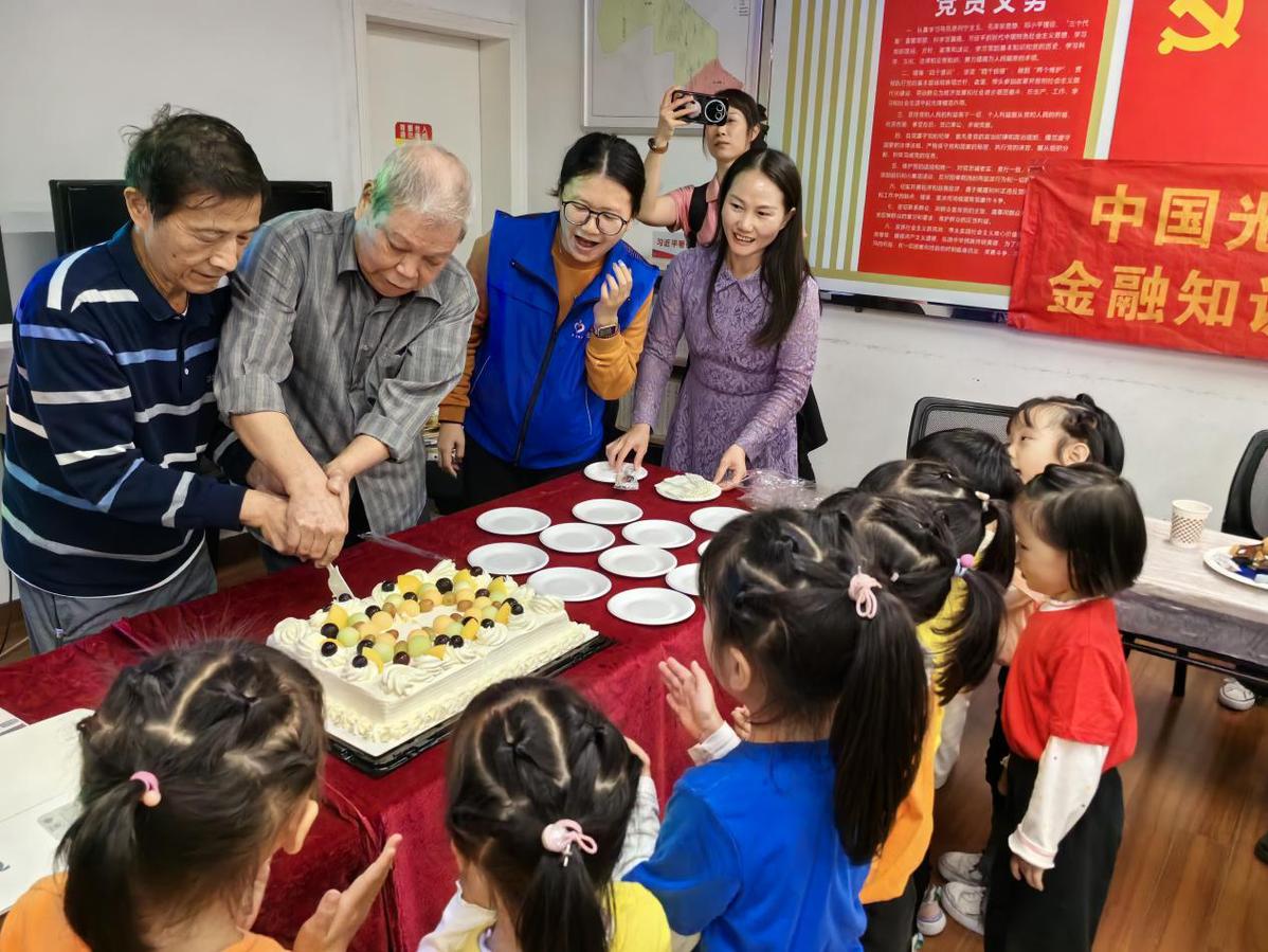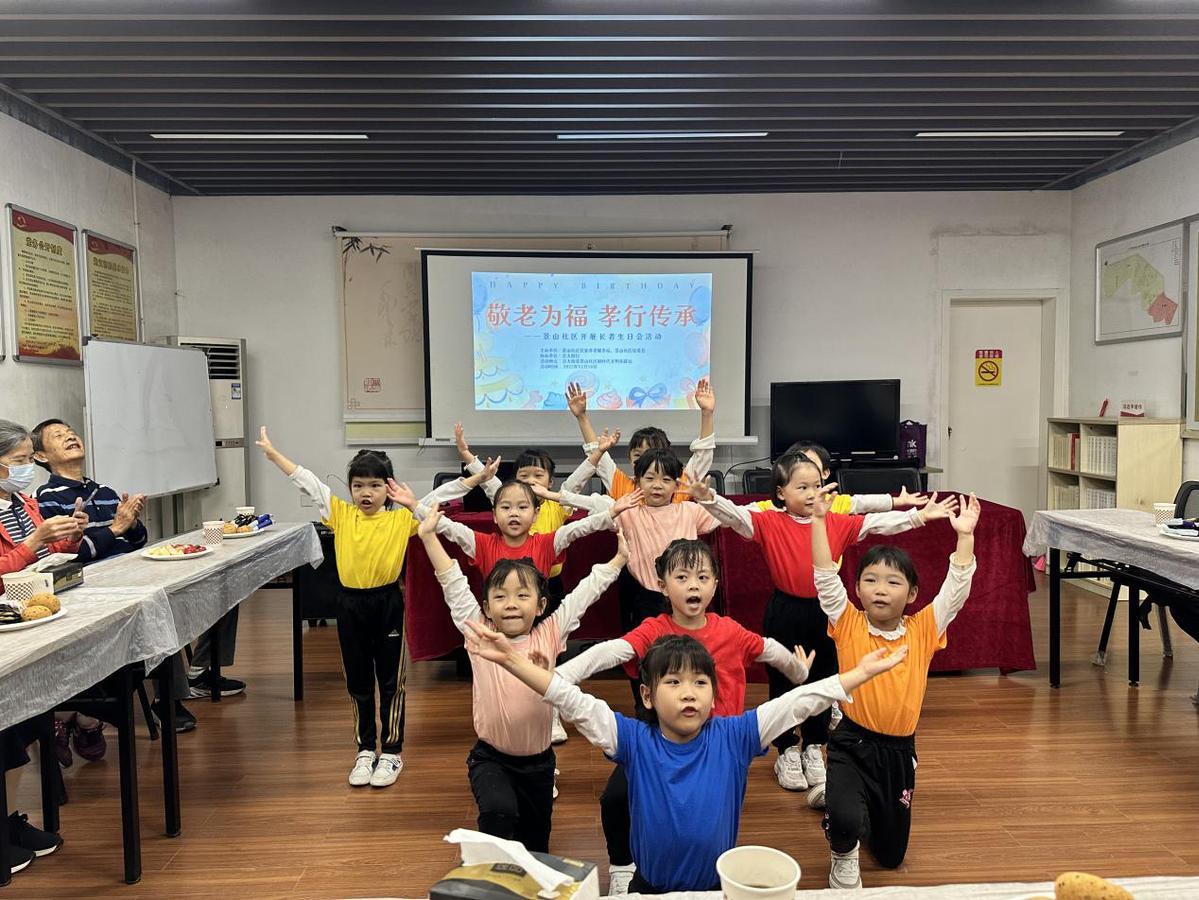 表演结束后,社区工作人员把提前准备好的蛋糕端出来,小朋友们集体合唱《生日快乐》歌。在小朋友纯真的歌声里,“寿星”代表共切生日蛋糕,孩子们将蛋糕一一送到长者们手中,祝爷爷奶奶身体健康、万事如意。蛋糕的香甜融入欢乐的笑声,绘就一幅幸福温馨的美好画卷。