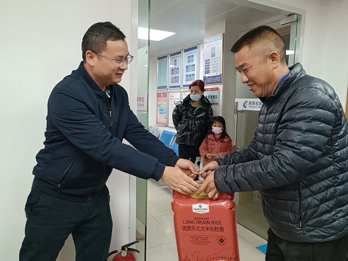 在冬至来临之际,为让辖区居民感受到社区“大家庭”的温暖,12月17日,迎宾社区党委联合珠海农商银行第五党支部、拱北支行党支部在社区党群服务中心开展“情暖社区,爱在冬日”关爱暖人心慰问活动,为辖区环卫工人、高龄老人和老党员等送上大米和油等慰问品。