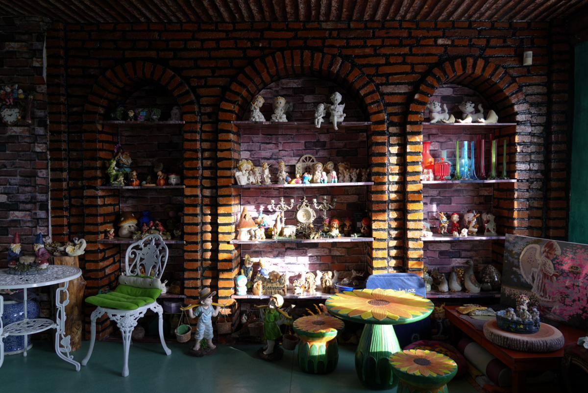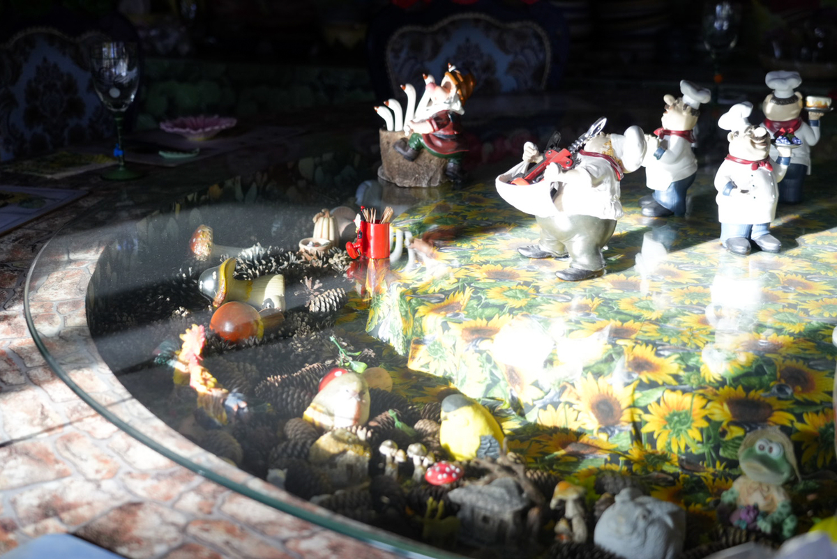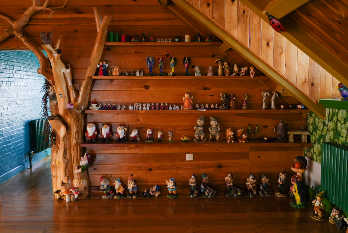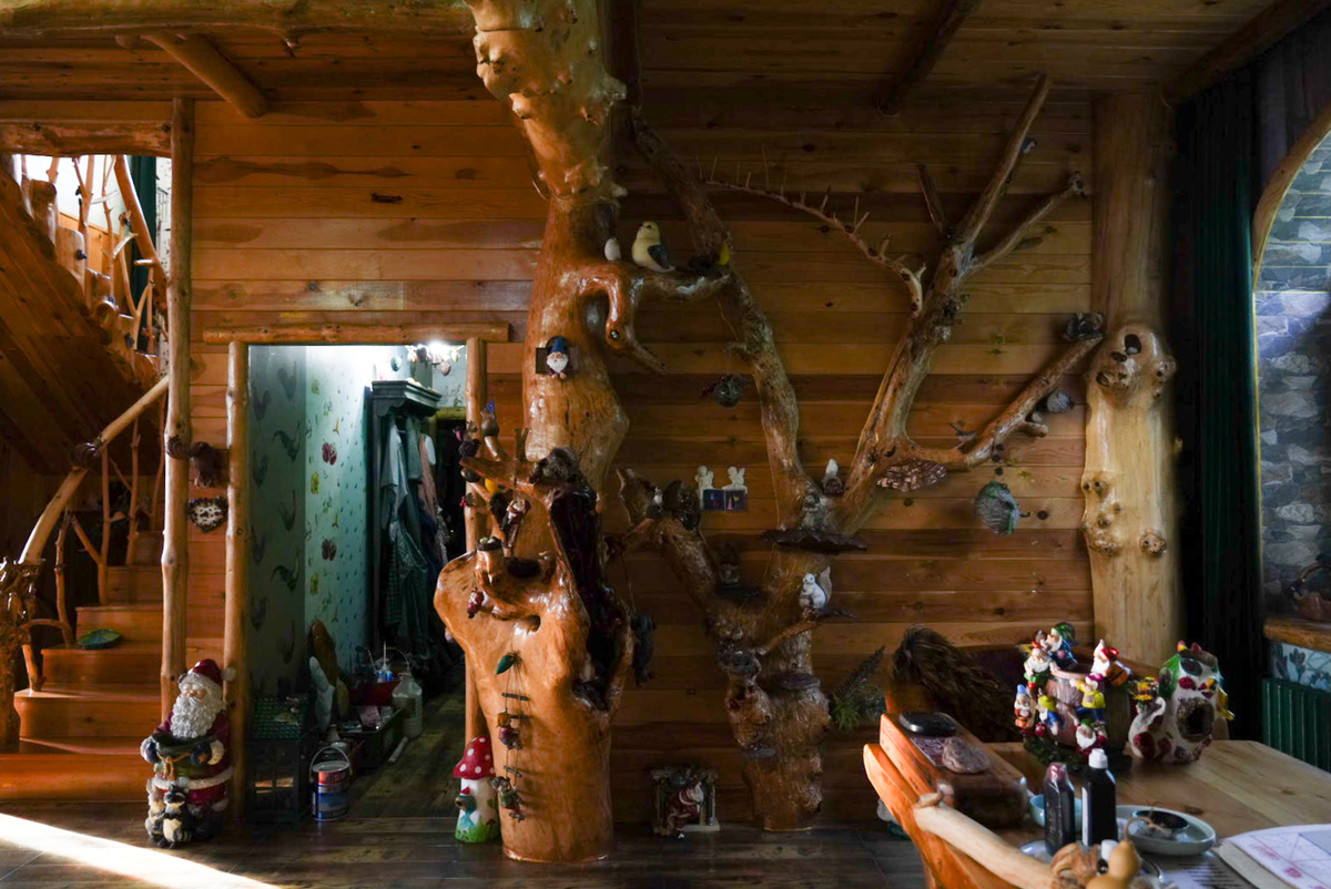 屋内更好似童话世界,房主自己雕刻的实木楼梯扶手上,爬着蜗牛、瓢虫和许多小矮人,好像下一秒就会开口讲话,近万个摆件都由房主人亲手制作、改造,让人眼花缭乱。