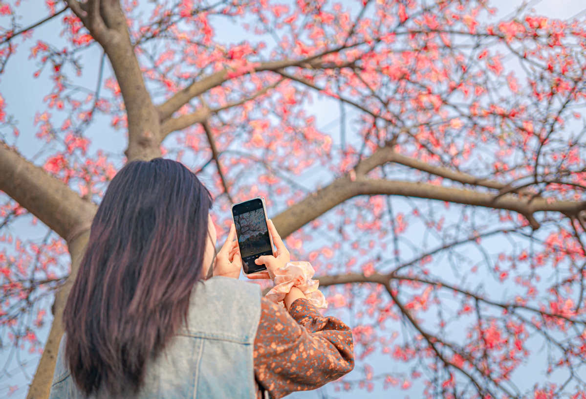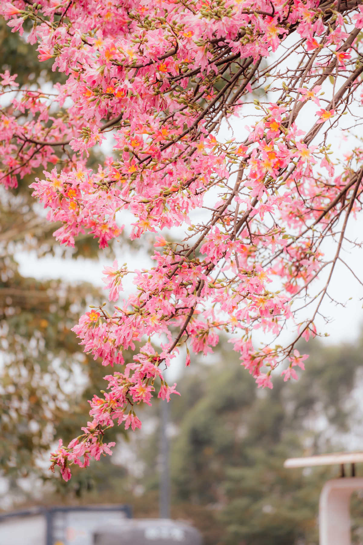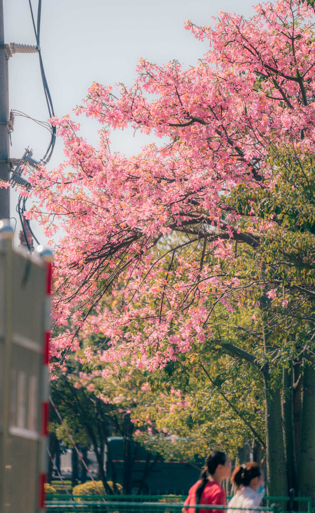 街道上美丽的异木棉热烈盛放,粉色的花瓣灿若云霞,美得让人移不开眼睛。