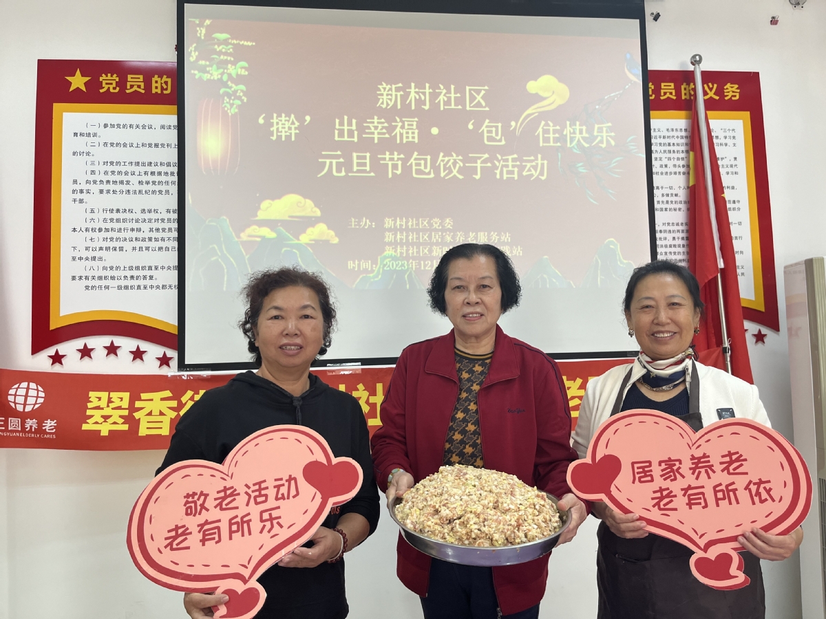 为弘扬中国传统文化和敬老爱老的传统美德,营造浓厚为老社区氛围,12月28日上午,香洲区翠香街道新村社区党委联合社区居家养老服务站,开展元旦节包饺子主题活动,吸引辖区高龄、空巢长者30余人参与。