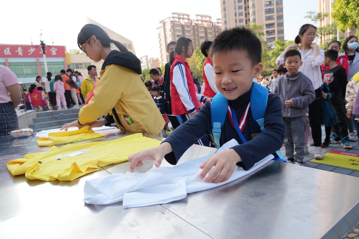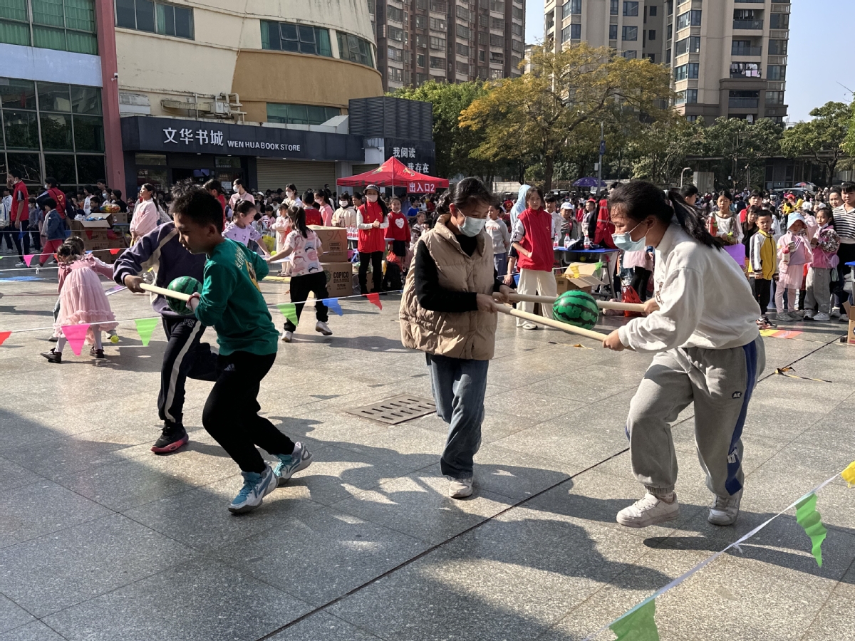 在投壶、蹴鞠、捶丸等传统游戏中,孩子们领略到传统文化的魅力;在四平八稳、西瓜保卫战等合作游戏中,孩子们合力完成游戏,明白了合作的重要性;在“趣”插秧、巧手叠衣等劳动教育游戏中,孩子们感受到了劳动的快乐……二年级的李思雨开心地提高手里的袋子,对记者说:“今天的游园活动真是太好玩了,这袋子里的小礼物都是刚刚玩游戏得到的,我觉得超级开心。”
