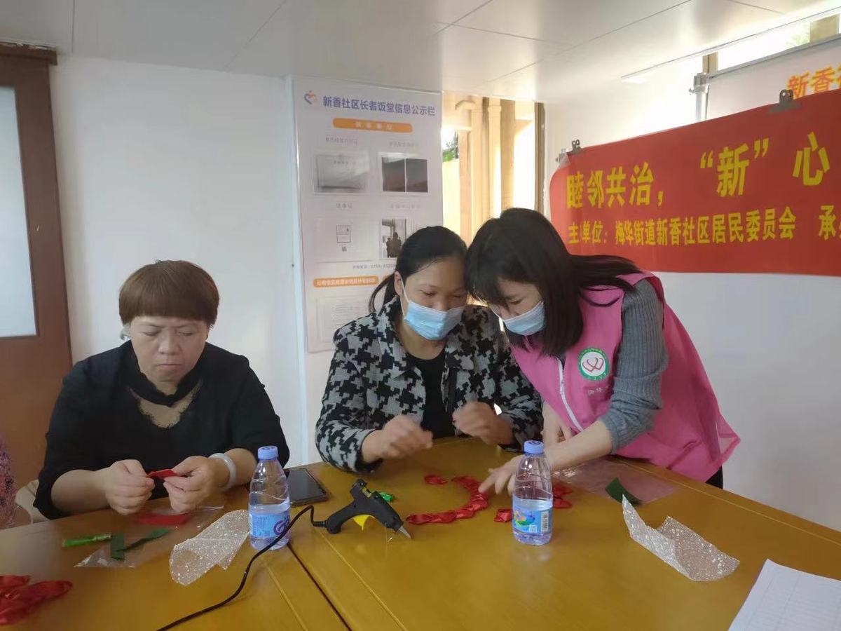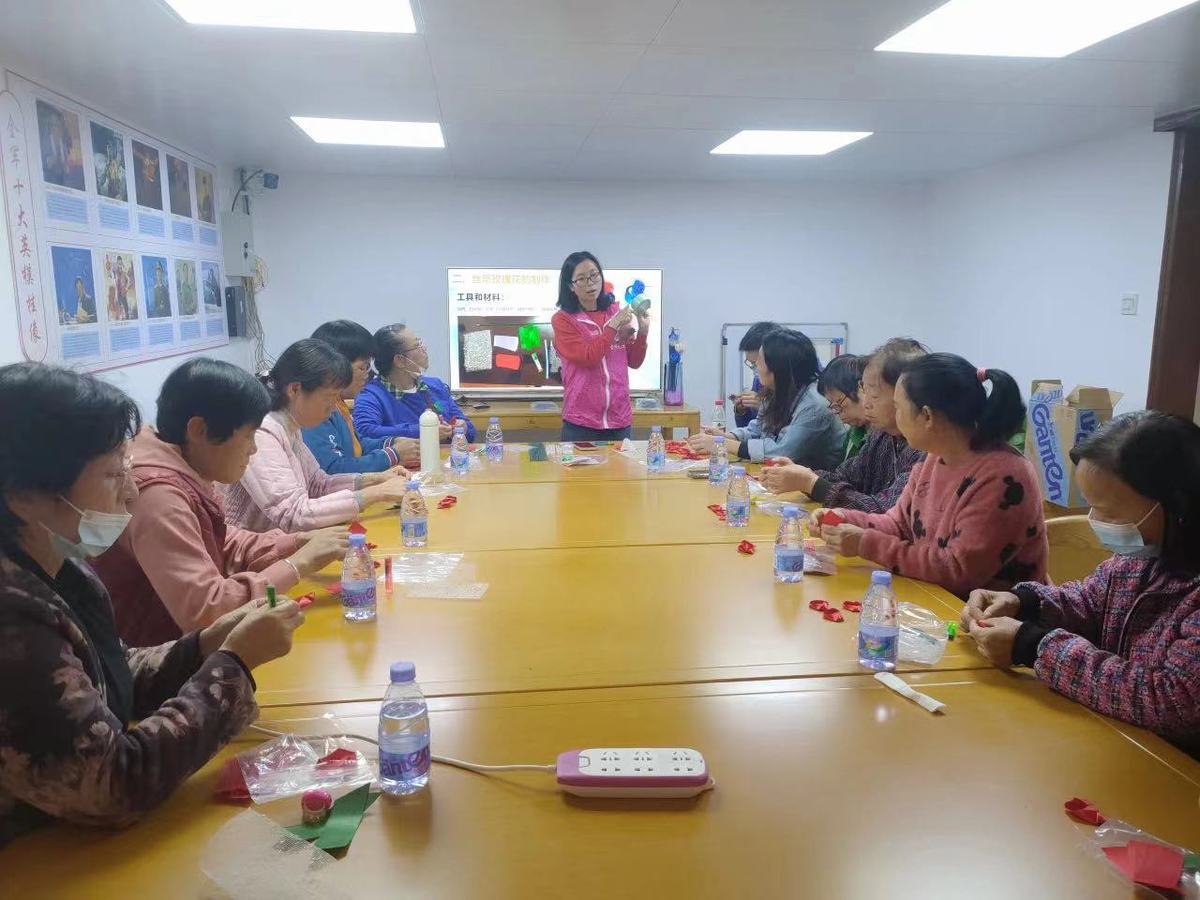 活动伊始,手工艺师从丝带的挑选、颜色的搭配、花朵的绣制等方面,为大家详细讲解丝带玫瑰花的制作技巧。大家怀揣着对美好生活的热爱和对新技能的期待,跟着手工艺师认真学习。当一朵朵美丽的丝带玫瑰花在手中绽放时,大家的脸上洋溢着成功的喜悦。