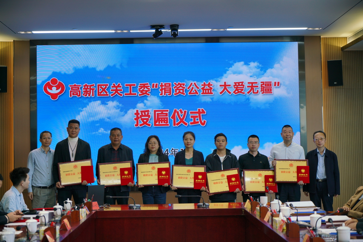 1月10日,珠海高新区关工委举行2024年第一次工作会议暨“捐资公益大爱无疆”授匾仪式。会上,14家积极关爱下一代的爱心企业获得表彰,被授予“捐资公益大爱无疆”牌匾。