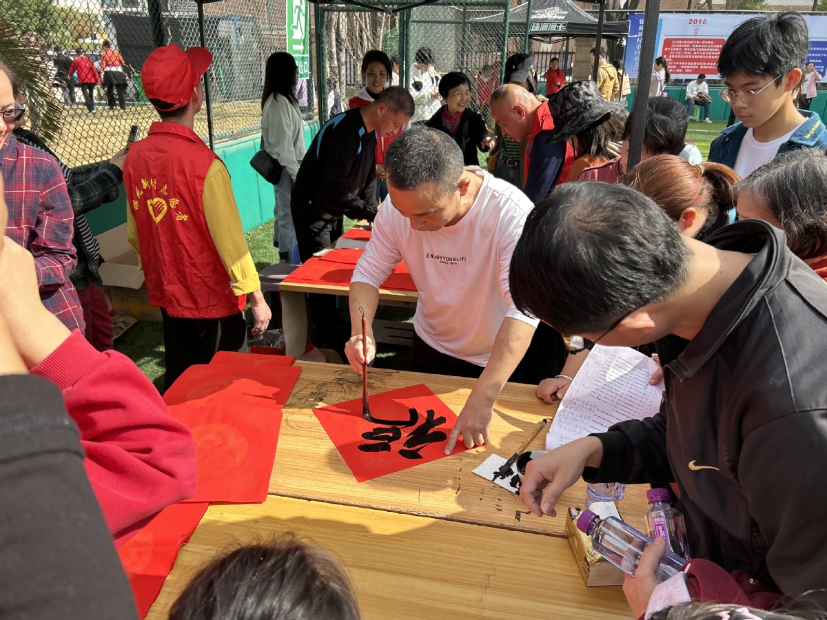 联欢会现场,社区书法老师们义务为居民挥春送春联。
