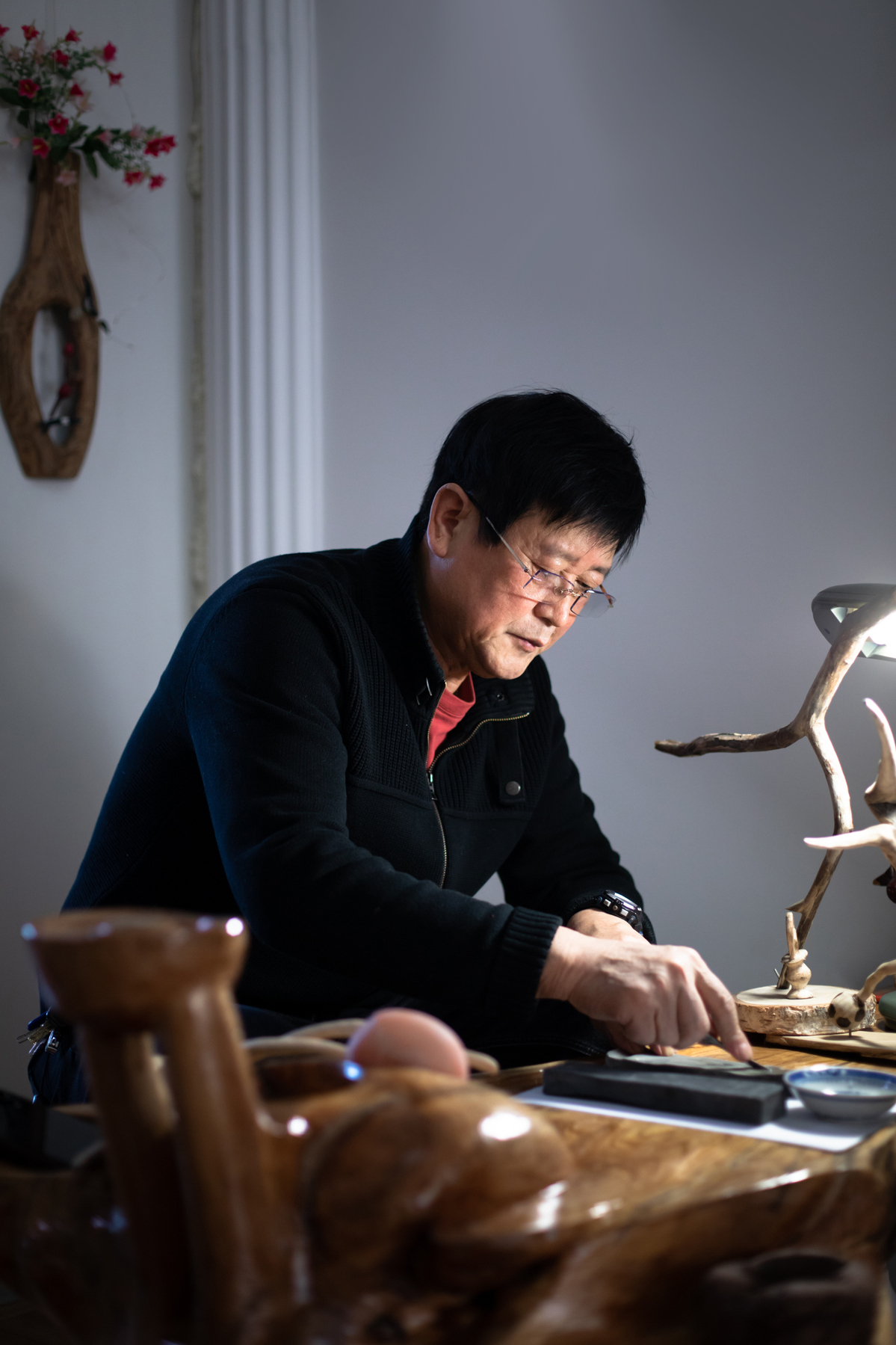 沿着树根“奇、特、妙、怪”的意蕴,融注想象力精雕细琢,每件作品都是独一无二。