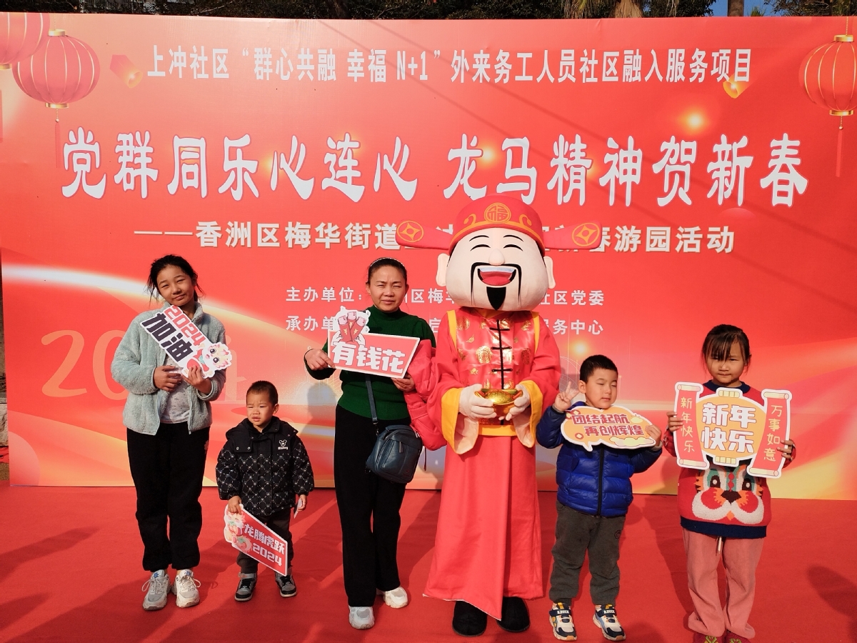 独在异乡非异客,别样年味暖心怀。春节临近,总有那么一些人,因为工作、家庭的缘故,只能在异乡过年。为使异地务工人员感受到浓郁而独特的年味,感受到第二故乡的的盛情和关怀,同时搭建社区内外来务工人员与居民之间交流、互动的平台,进一步丰富居民群众文化生活,营造来香洲过大年的喜庆气氛,梅华街道上冲社区党委主办了本次活动。