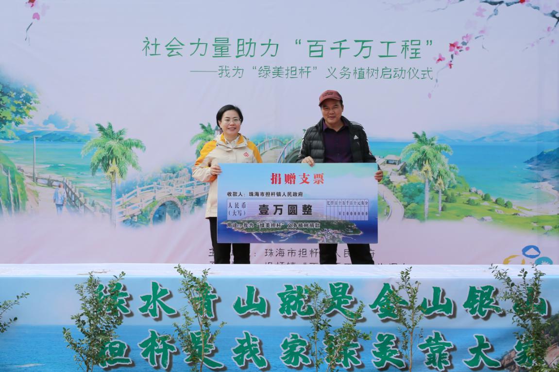活动现场设置了树苗浇灌环节,与会嘉宾拿起浇水壶精心灌溉小树苗,为“绿美担杆”行动厚植一份绿色心愿。珠海市委组织部代表、鹤洲新区筹备组领导和局领导现场接受12家企业代表捐款并合影留念。