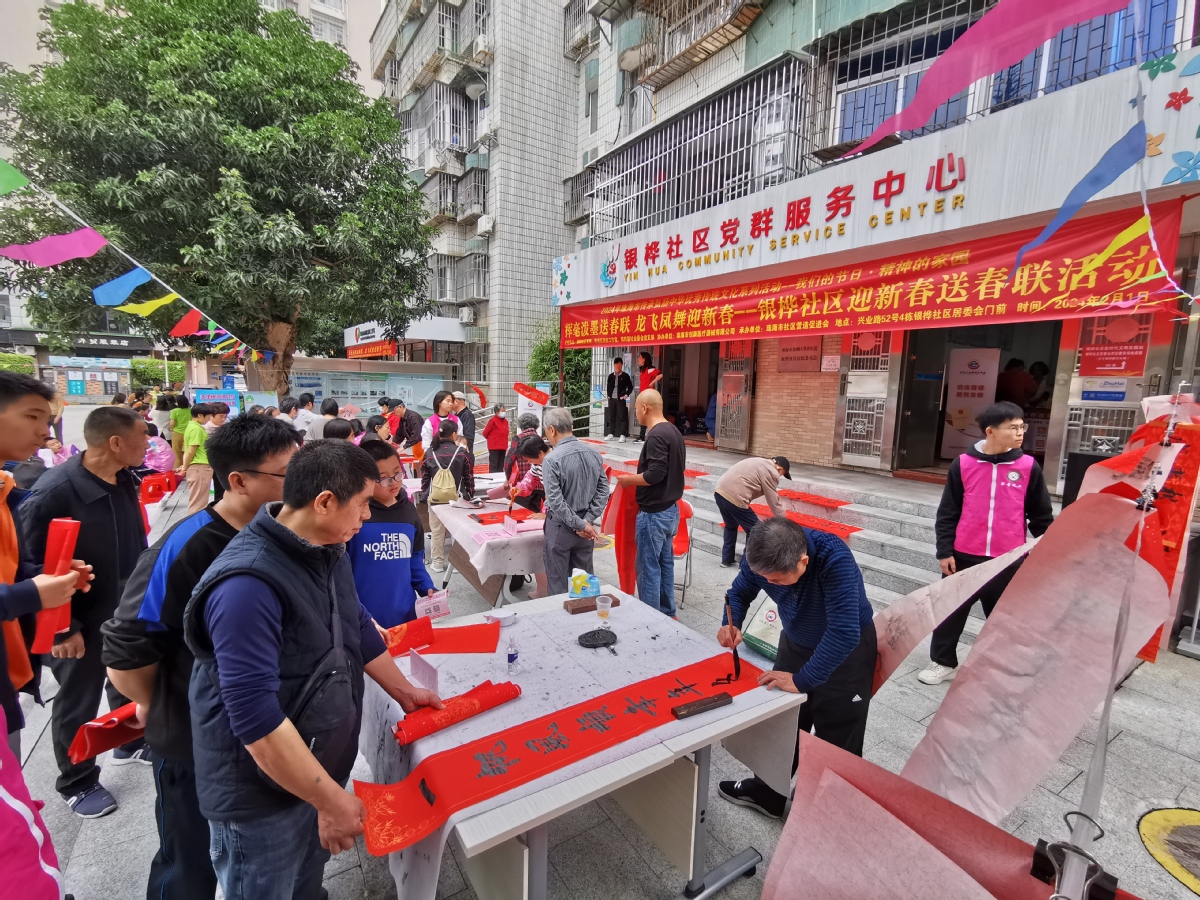 “龙腾盛世万家乐,凤舞九天百业兴”“吉星高照平安宅,财神常驻幸福家”……近日,香洲区翠香街道银桦社区联合香洲区涂叔工作室、银桦新村业委会党支部及爱心商家,举办便民服务迎春集市,邀请多位书法“大咖”为居民书写春联,并上门给困难群众送春联。