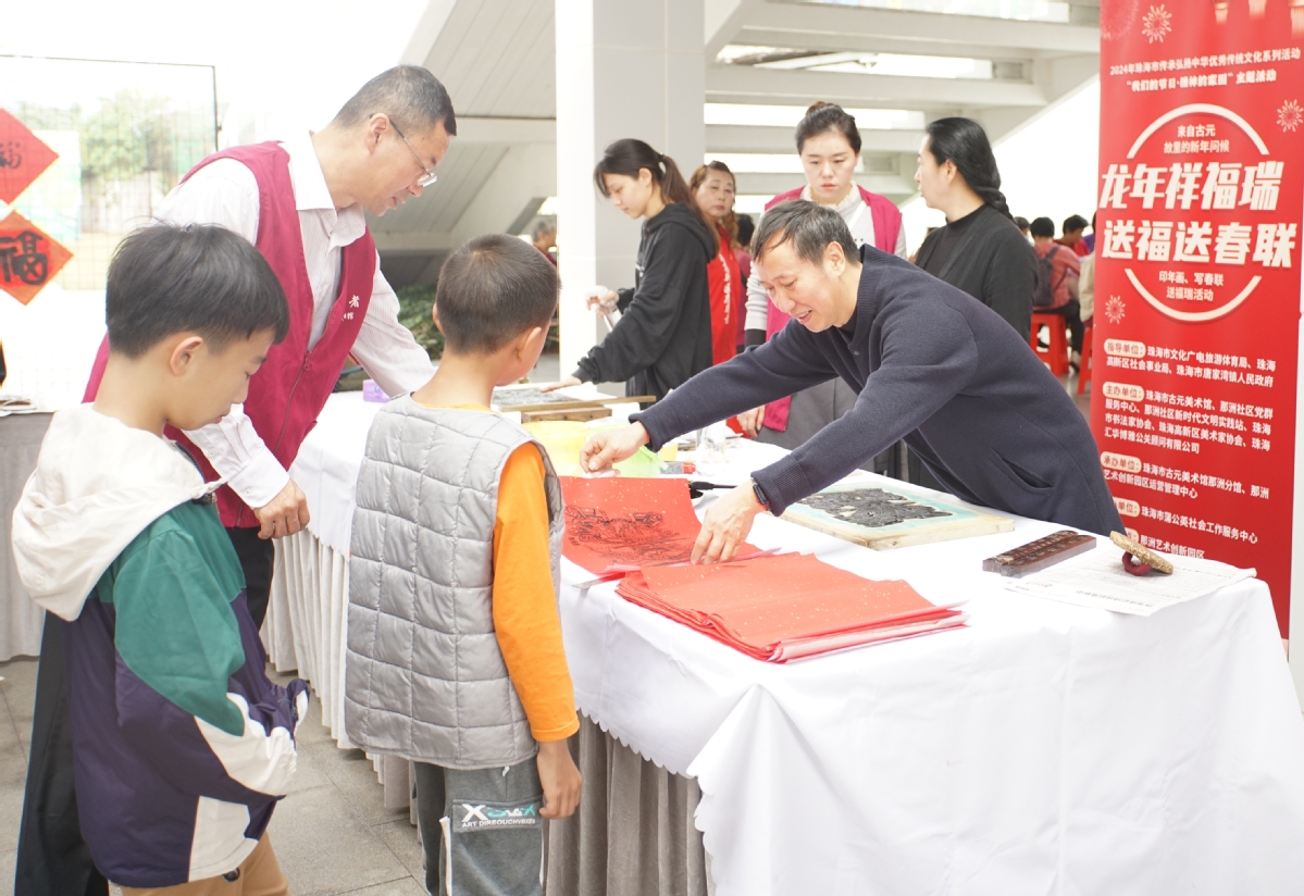一纸春联贺新年,千家万户情相牵。2月4日,一场年味十足的印年画、写春联、送福瑞活动在那洲艺术创新园区举行。活动由珠海市文化广电旅游体育局、珠海高新区社会事业局、珠海市唐家湾镇人民政府指导,珠海市古元美术馆、那洲社区党群服务中心、那洲社区新时代文明实践站、珠海市书法家协会、珠海高新区美术家协会、珠海汇华博雅公关顾问有限公司主办。
