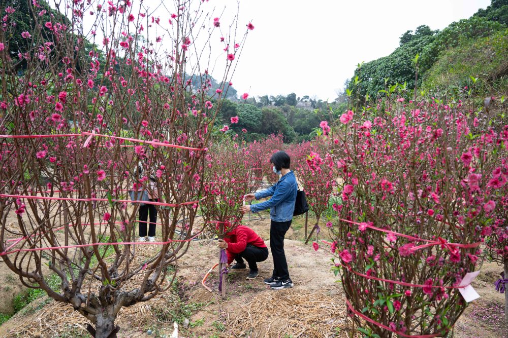 虽然口中抱怨“这工作日晒雨淋,是辛苦钱,一年也揾不到几多钱”,但黄燕雯侍候起山谷中的200多株桃花,依然爱若珍宝。“桃花要除叶、折枝,才能开得靓。”她边和记者介绍,边手下不停地除去花蕾边争肥的细叶。