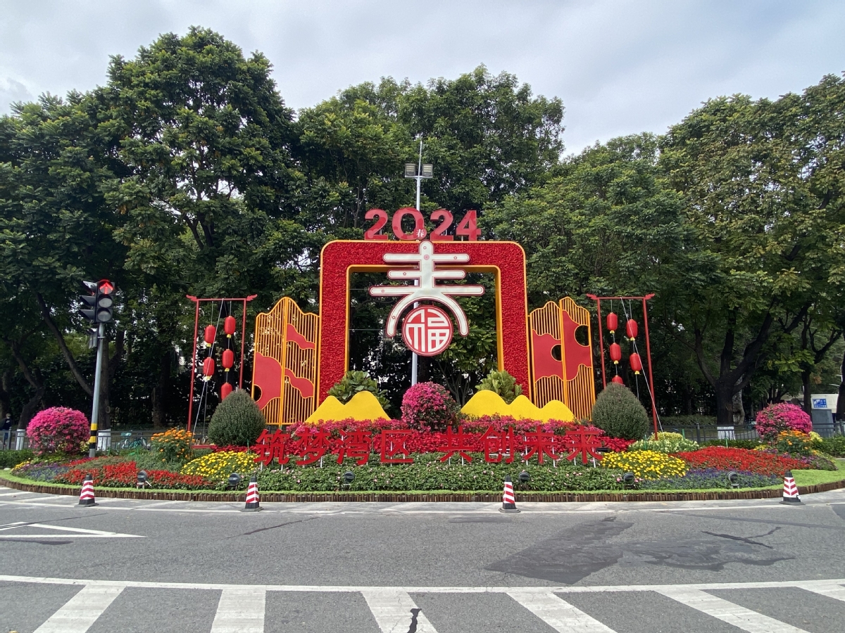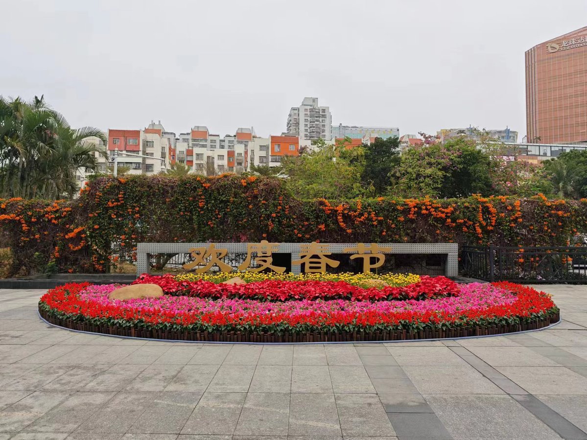 香洲区城管部门摆花布景迎新春,龙年“气氛组”来喽!