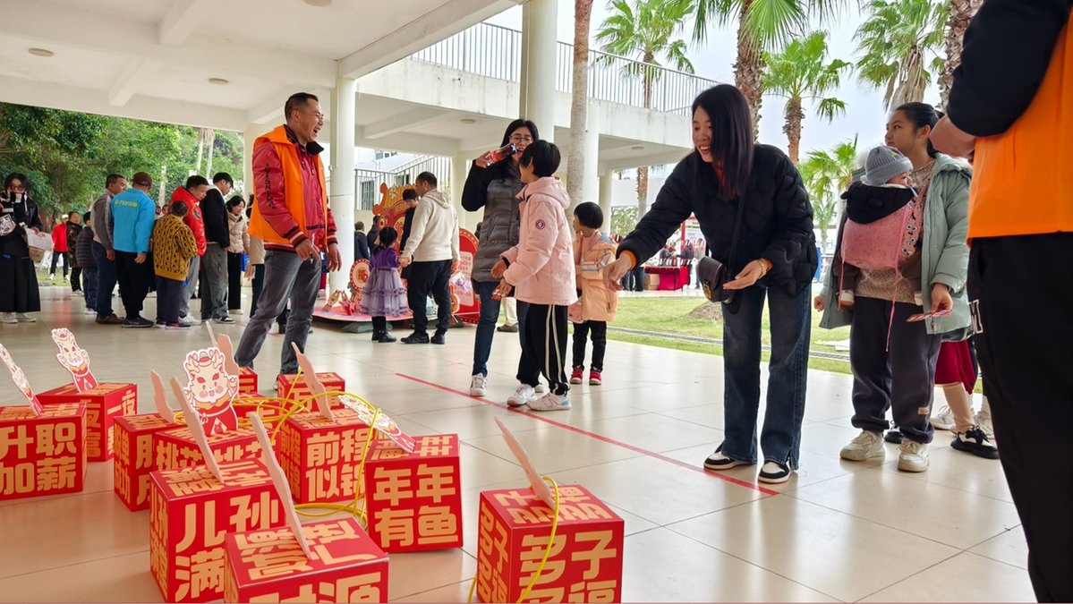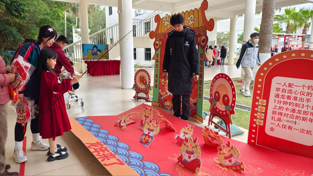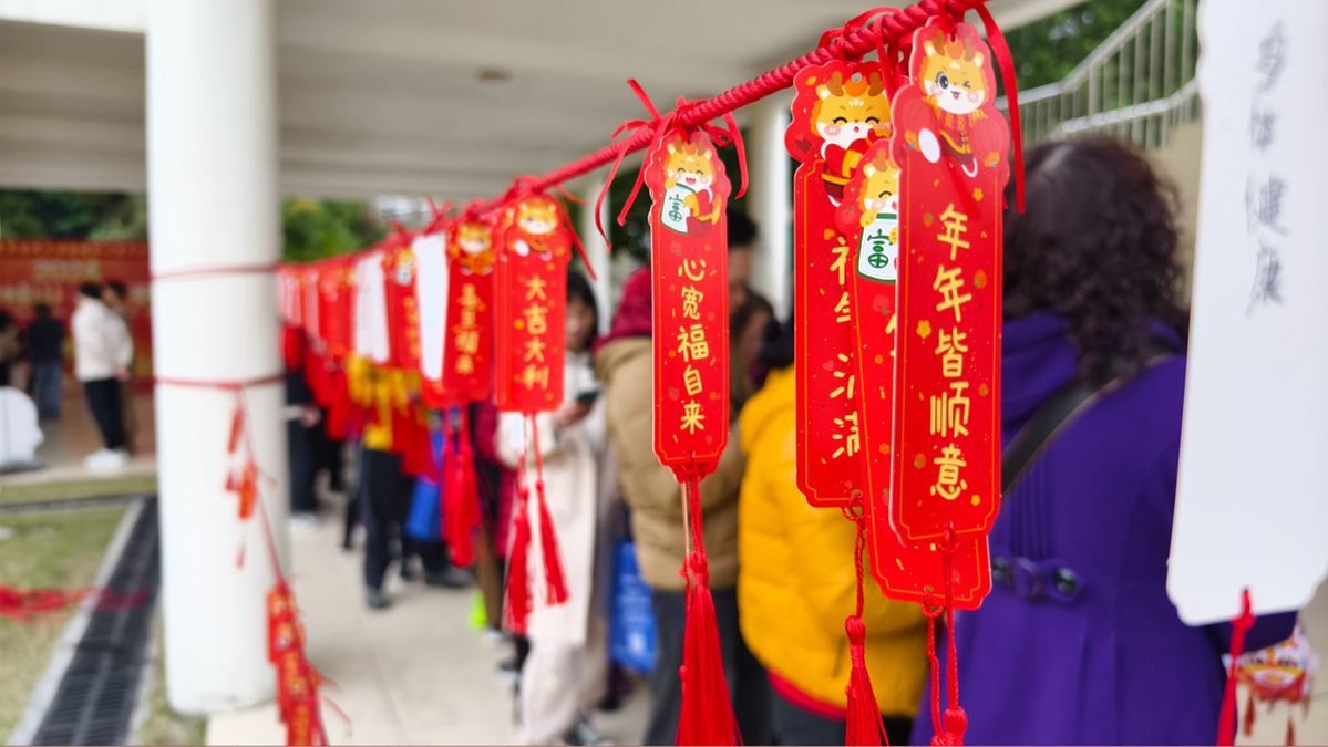 本次游园会设置了龙飞凤舞套圈圈、龙年钓心愿、签王之王、运气财神以及竞技游戏抓娃娃和弹珠机6个游戏,每个游戏摊位都是人头攒动,欢声笑语不断。现场还设置了“寄语”区域,大家纷纷选择了自己喜欢的寄语卡片进行悬挂,寄托对新一年的美好祝愿,为活动增添了温馨的氛围。