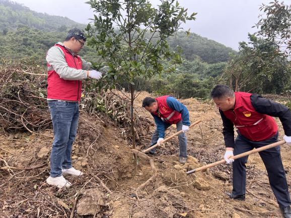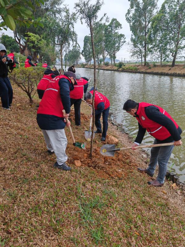 三灶镇坚持群众路线,充分利用微信公众号、村居阵地等方式,发出“人人参与,绿美珠海”倡议。2月5日,在木头冲村文头墩山开展绿美广东生态建设义务植树主题党日活动,栽种荷木400株。
