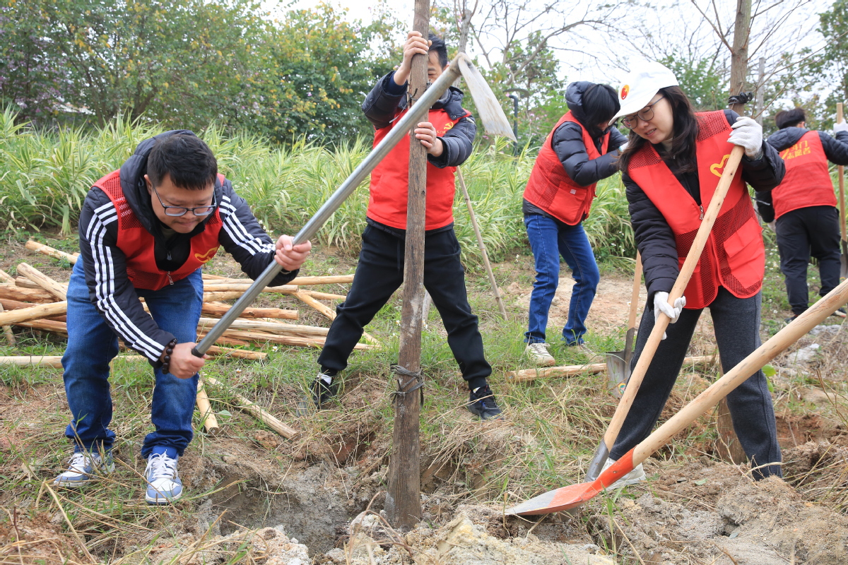 活动中,斗门镇300多名干部群众以及党员志愿者、巾帼志愿者、新时代文明实践志愿者等多个志愿者团体参与,现场氛围高涨,吸引了不少路过的群众一同参加。植树期间,大家三四人一组,齐心协力,挥锹铲土、扶植树苗、培实新土、提桶浇灌……尽管春寒料峭却挡不住大家的植树热情。本次活动共种下215株落羽杉,新苗入土呈现一派生机勃勃的景象。