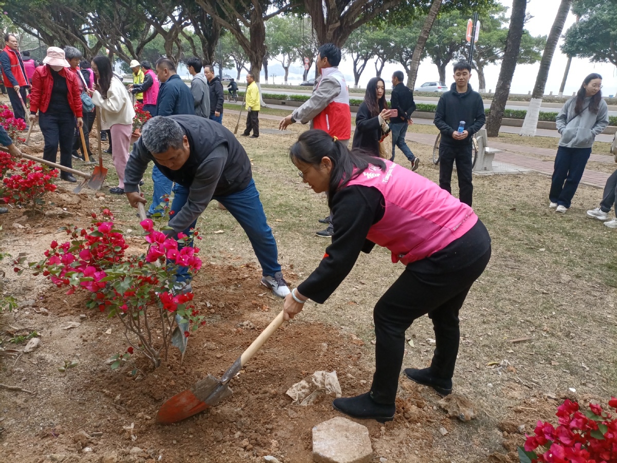 此外,为进一步响应“人人动手 绿美珠海”口号,2月28日,狮山街道东风社区党委、社区妇联组织志愿者,在人民东路65号“博爱林”补种了由社区党员、居民捐赠的215株三色矮化朱瑾。