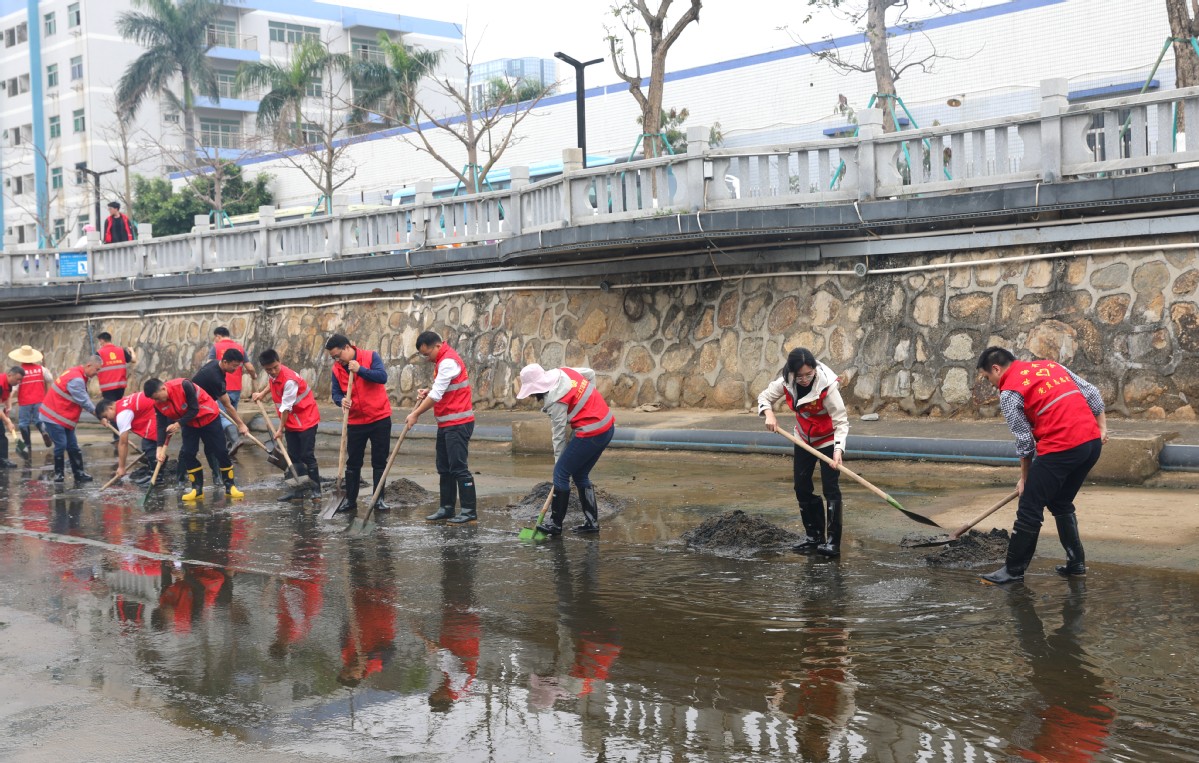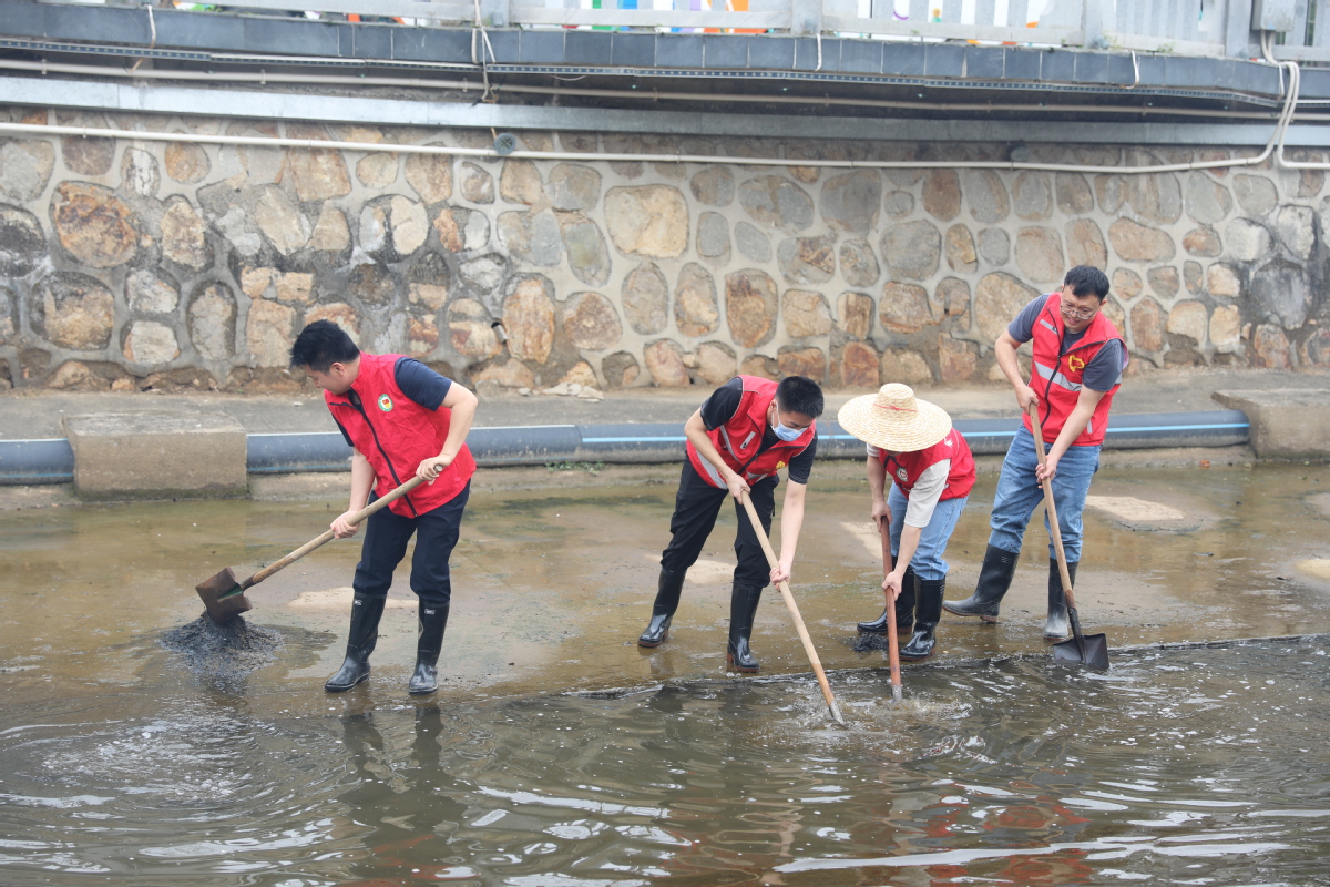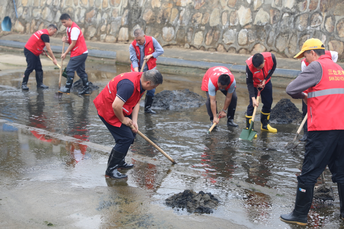 活动现场,志愿者们身穿红马甲,手持工具,对河道内的淤泥进行了清理。有的负责铲淤泥,有的清理河道的杂物,还有的负责将淤泥和垃圾装入袋中运走……经过一上午劳动,河道内的淤泥得到了有效清理。本次活动共清理河道长度约100米,清理河道淤积泥沙约30m³,进一步提升了三灶镇人居环境质量、保护水生态环境、增强防洪排涝能力。