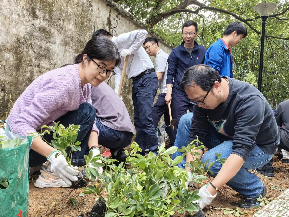3月6日,狮山街道红旗社区党委携手市港澳流渔办党委、市医疗保障局机关党支部、市人民医院党委等共建单位,在同一天开展了3场“共驻共建同心林,增绿添绿红旗红”植树节活动。“双报到”党员、街道驻点人员、社区党员、居民义工等近100人参与,1000余株苗木在红旗社区“安家落户”。