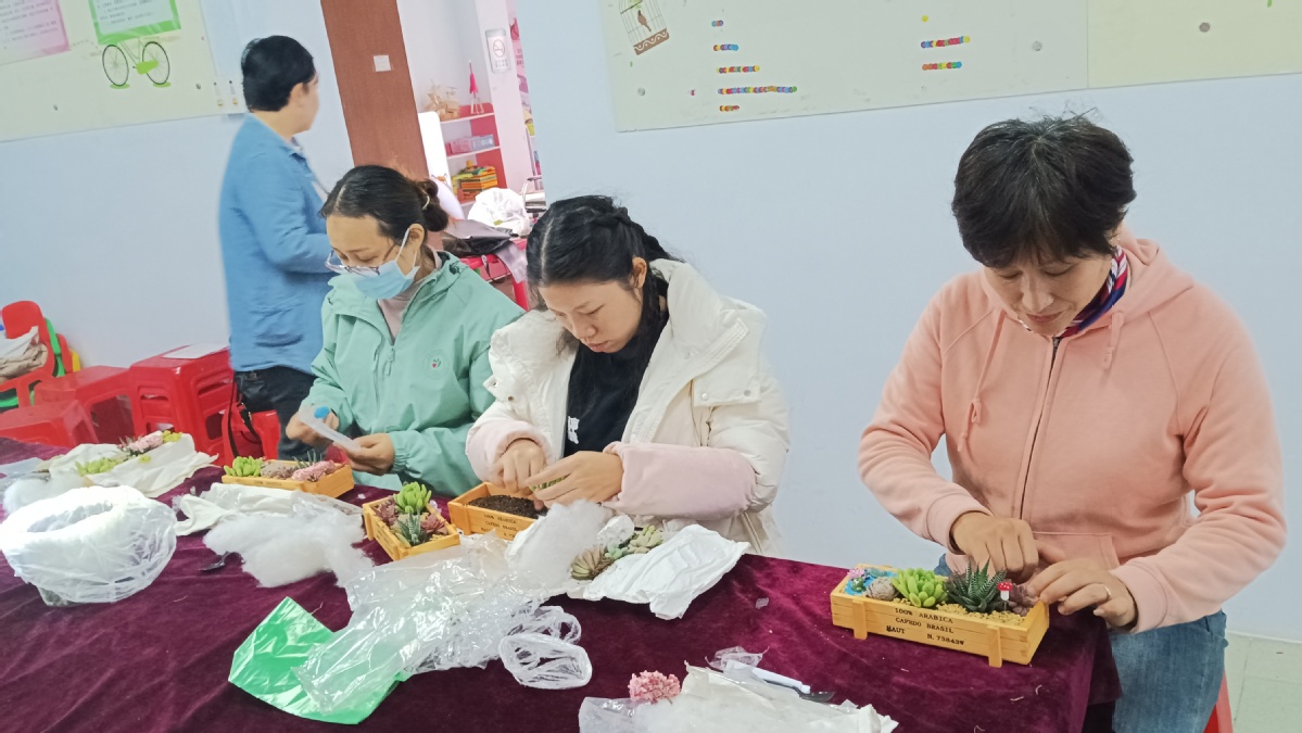 随后,社区邀请花艺师为居民进行绿植教学,从绿植的选择、搭配,到日常的养护方法,花艺师进行详细讲解,现场演示如何制作精美的绿植盆栽。在绿意盎然的植物世界中,参与活动的妇女们纷纷挑选自己心仪的绿植,搭配各种小装饰,创造属于自己的“小花园”。大家边做边聊,分享种植的乐趣和心得,现场气氛温馨活跃。经过一个多小时的精心制作,一盆盆充满生机的绿植盆栽在大家手中绽放。这些盆栽不仅仅是简单的植物,更是妇女们对生活的热爱与期许的象征。大家纷纷举起自己的作品,拍照留念。