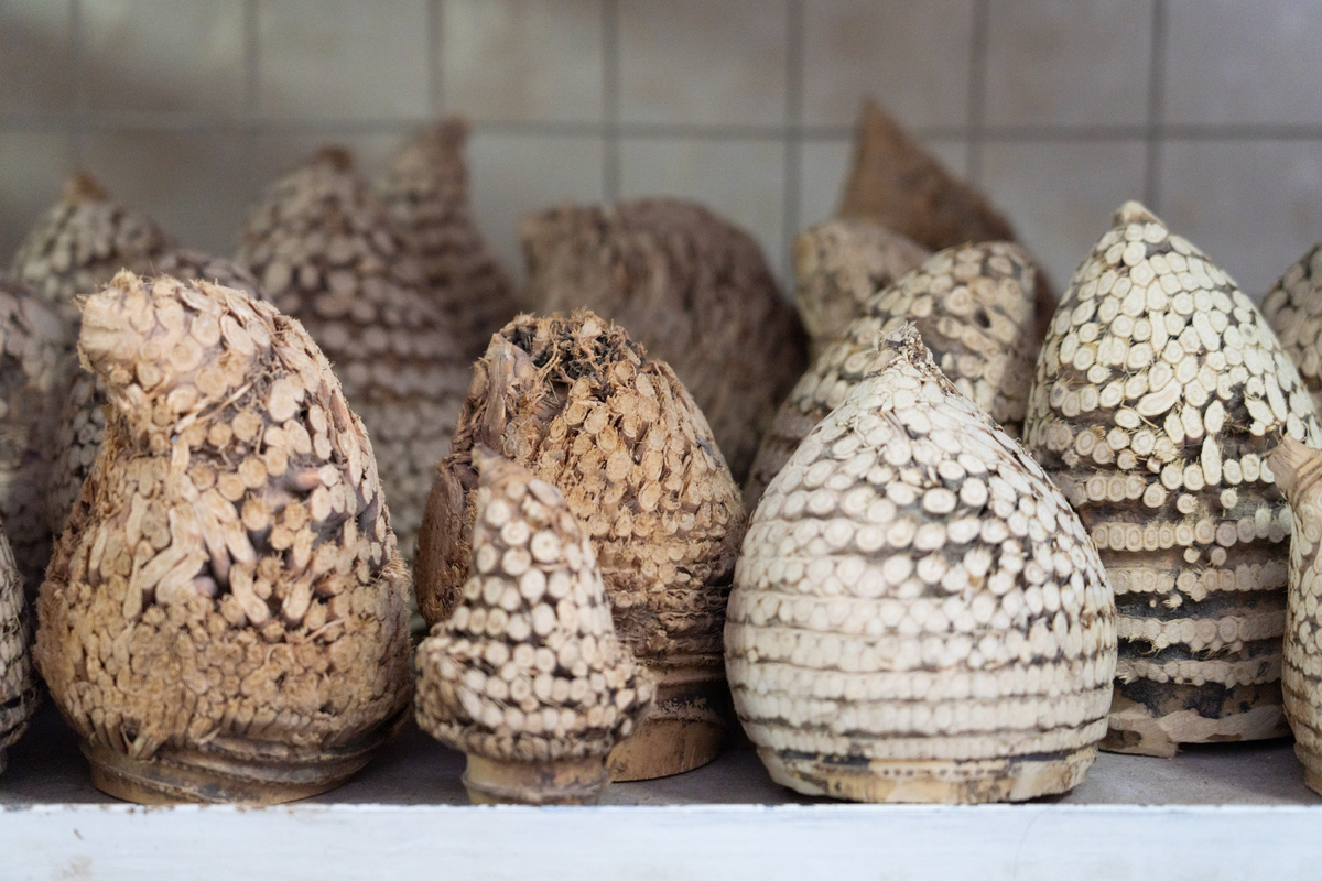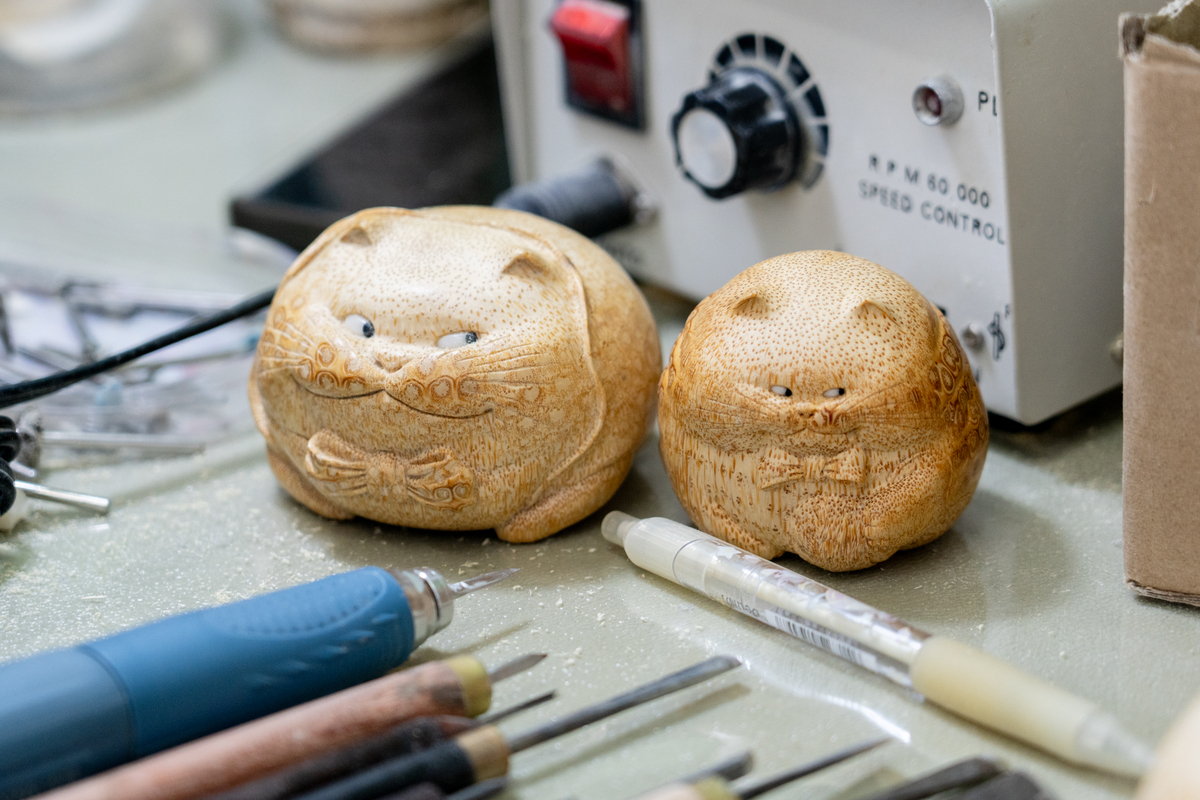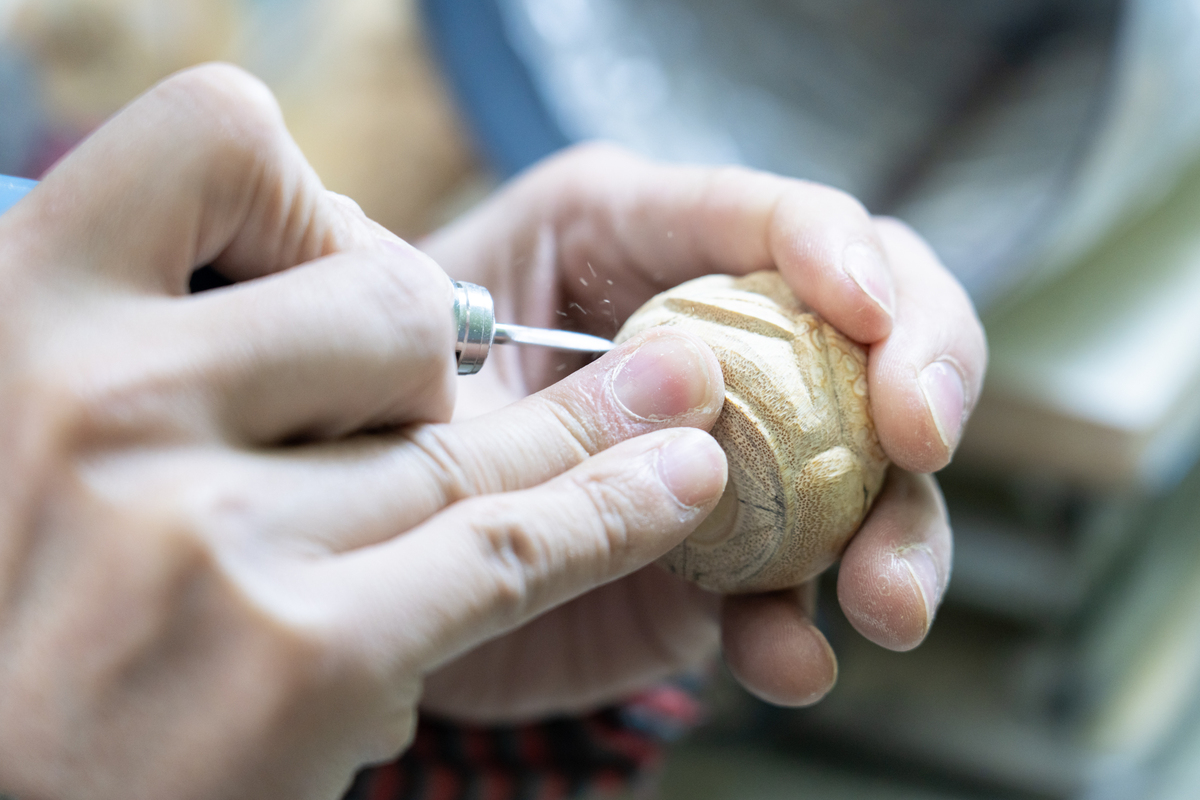 现在郜周强以竹根雕刻为主。在2023年,郜周强思乡心切,决定返乡创业,将成品通过网络售卖。他希望通过自己的努力,让更多家乡人了解竹木雕刻的价值和魅力。目前他收了四位徒弟,一方面可以传承雕刻艺术,另一方面也可以带动家乡人就业增加收入。