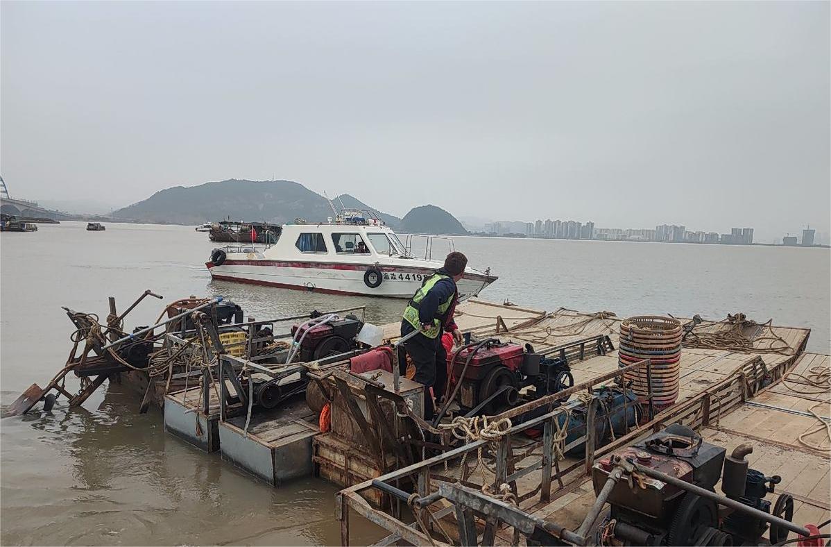 行动期间,陆上由公安、打私等执法人员进行警戒,防止群体性事件;水上由金湾大队带领执法人员在关键水域安排执法艇设卡拦截,将发现的“三无”船舶转移到起吊点,有力保证了行动效果。