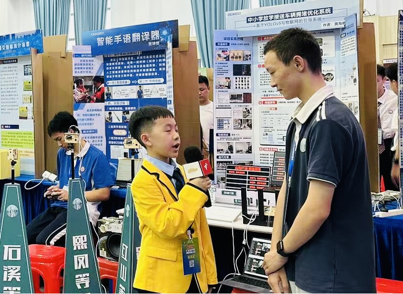 22日上午,现场进行了全省十佳优秀科技铺导员评选,15名候选辅导员向现场观众、评审专家及大众评委进行展示汇报,最终评选出全省十佳优秀科技辅导员。凤凰中学科创队教练赖甲坎老师获得“全省十佳优秀科技辅导员”。