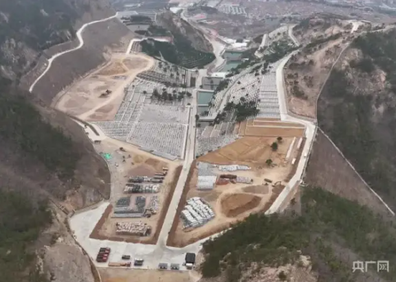 记者在现场看到,太平陵公墓的北山和南山均有成片扩建的墓穴,旁边平整出来的土地上堆满了石材,附近停放着几台挖掘机和大型运输车辆。部分裸露黄土的地块刚刚种下了一些树苗。