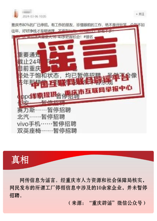 中国互联网联合辟谣平台2024年3月辟谣榜