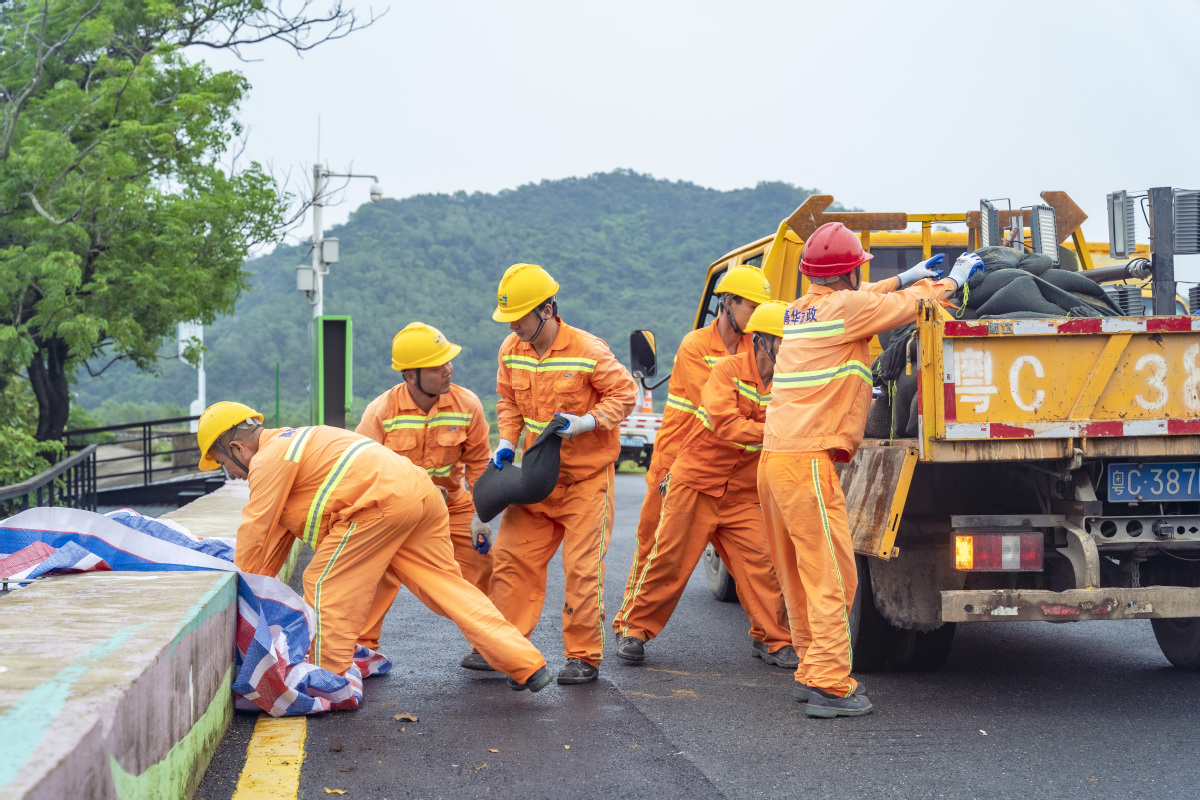 当天下午,随着总指挥一声令下,演练正式开始。“报告指挥长,巡查发现淇澳红树林海堤西侧堤身出现缺口……”现场,水闸、海堤操作组人员模拟发现险情,经向指挥长汇报得到指示后,启动应急预案;应急抢险组负责防汛物资输送、垒筑沙包、铺设彩条布、挡板、架设应急照明灯等抢险工作;供电保障组负责水闸应急柴油发电机启动运转。与此同时,排水抢险组巡查人员发现淇澳红林路因地势低洼排水不畅,出现约80平方米、40公分的积水。经围蔽、泵排等系列抢险工作后,积水情况得到有效控制。