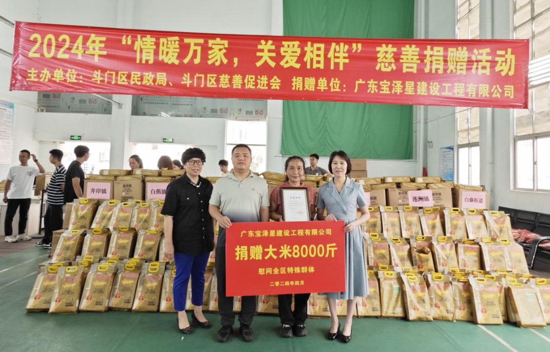 活动以“情暖万家,关爱相伴”为主题,爱心企业广东宝泽星建设工程有限公司通过斗门区慈善促进会向斗门区的特殊困难群体送上大米一批。