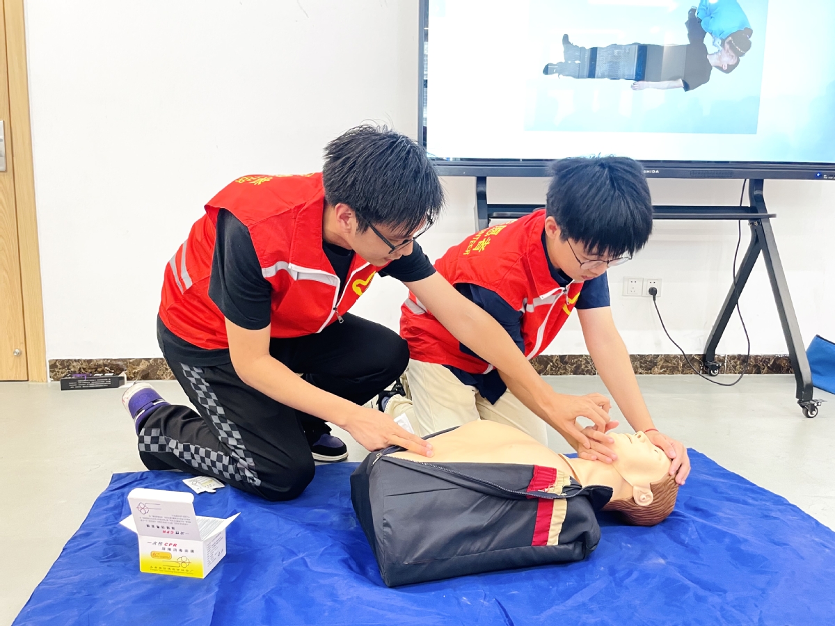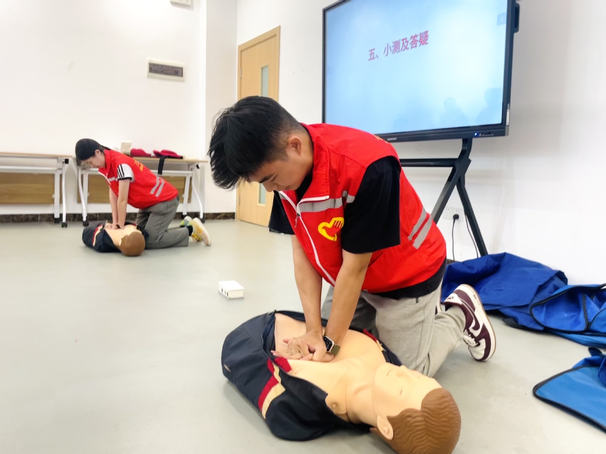 据了解,志愿者们都接受了理论授课+实操模拟+实操考核的“应急救护必修课”,包括学习CPR(心肺复苏术)、AED使用、气道异物梗阻急救法和创伤包扎等急救知识,并以操作演示及实操的方式,围绕心肺复苏术、创伤包扎等进行实操演示,做到急救知识熟记于心。此外,志愿者们还要展开分组实战考核,实现理论与实践的融合。