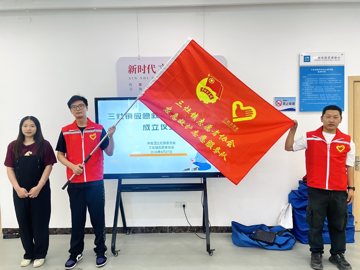 4月27日,在三灶市民艺术中心举办的“青年团员学急救,应急救护当先锋”第四期大学生应急救护培训活动上,一支新的志愿服务队成立了——三灶镇应急救护志愿服务队,这是一支完全由大学生组建的志愿服务队。