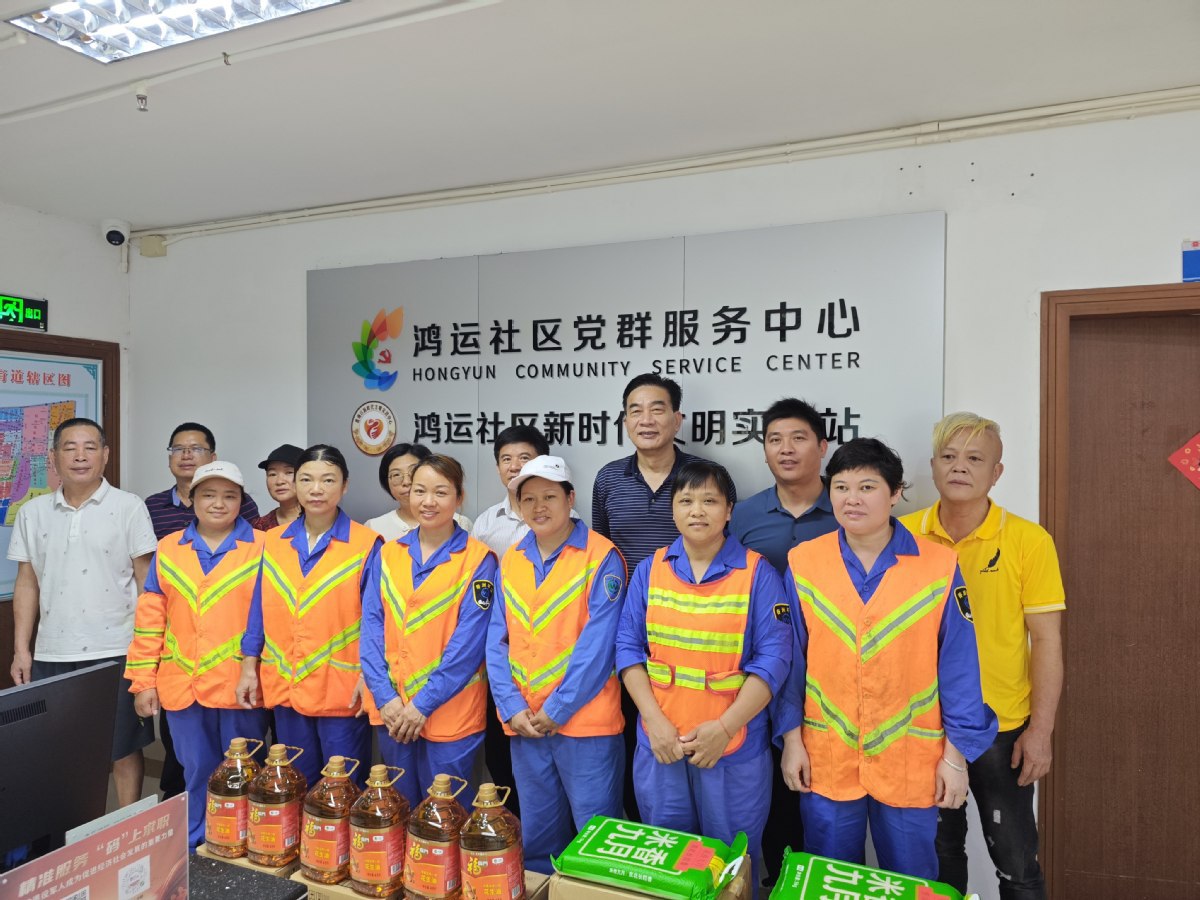 5月2日,梅华街道鸿运社区联合社区工商业促进会开展关爱慰问环卫工人活动,由香洲区人大代表、街道和社区干部、辖区企业负责人组成的慰问组向城市美容师送上大米、食油等慰问品,感谢他们节日期间仍然坚守岗位,为保障城市环境整洁付出的努力。