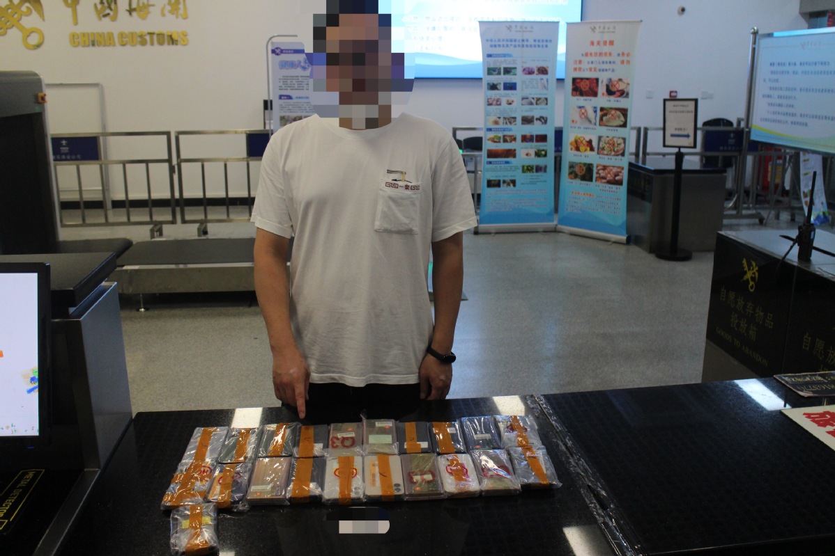 4月25日,拱北海关所属湾仔海关在湾仔口岸查获一起旅客绑藏走私手机进境案,涉案手机共计42台。