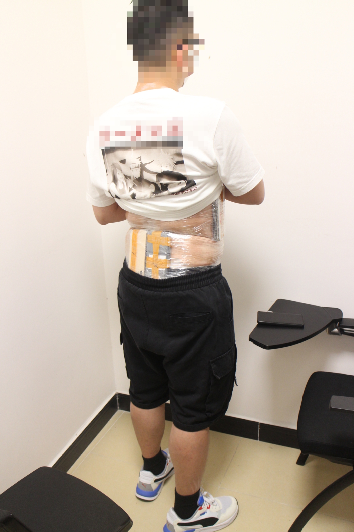 当天10时45分,一男子经湾仔口岸旅检大厅海关“无申报通道”进境。现场关员发现该男子后腰部微微隆起、弯腰姿势不协调,对其作重点检查,发现该男子在腰腹部、两大腿外侧均用透明塑料薄膜绑缠了大量旧手机,数量共计42台。目前案件已移交缉私部门处理。