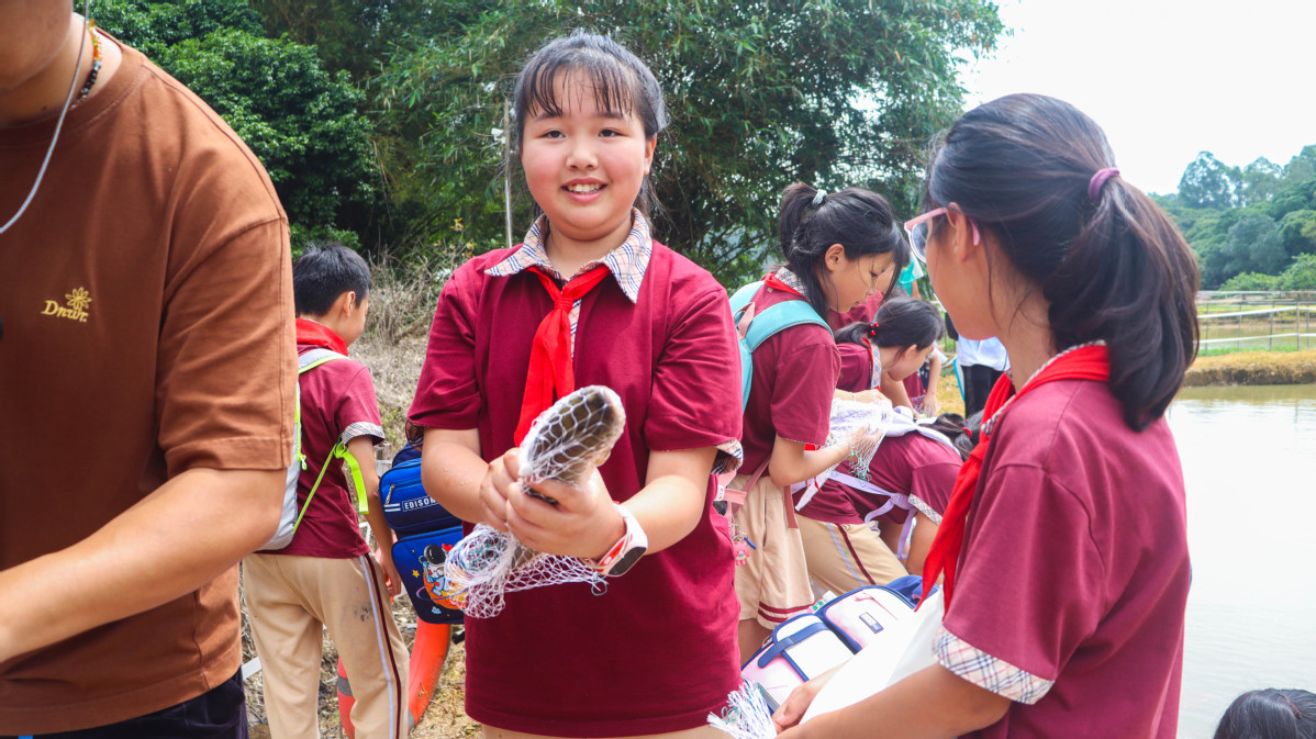 “本次的研学活动,是结合我们学校的国际视野课程当中的。本学期的主题就是家乡文化。一二年级是采摘水果和种植水果,三四年级是农耕文化,五六年级主要是渔家文化。这也是结合了绿美广东,绿美家乡和绿美校园这么一个主题展开的。也希望同学们在这次活动当中,更加了解家乡,同时锻炼他们的动手和合作能力。”