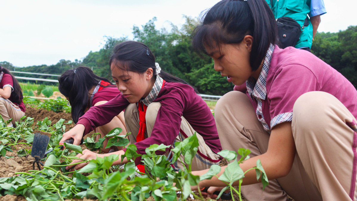 伴随城市化的逐步推进,越来越多的疍家渔民上岸居住,过上崭新的生活。农耕劳作也就成了现代疍家人必须掌握的劳动技能。同学们有序地领取农耕工具,走下农田,农耕劳作,开垦犁地、清除杂草、松土备耕。学习耕地种植方法,感悟劳动之美。