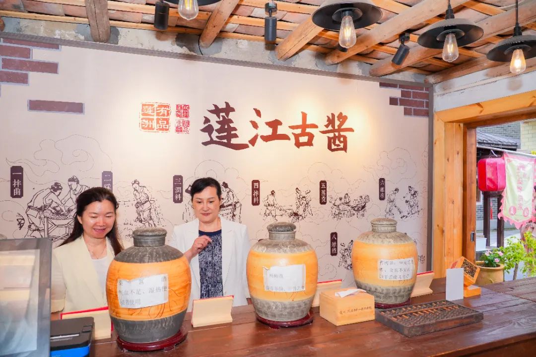 在莲江村,调研组先后参观了游客服务中心、乡村智造馆、“巾帼优品”无人售卖店、“莲洲·笑骑骑”运营中心等创新项目,实地走访和体验莲江古酱、爱莲茶社、柴火小笼包等“一家一品”庭院经济业态,感受农村妇女依托“庭院经济”在家门口实现就业增收的发展成果。