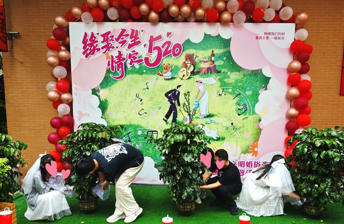 5月20日,斗门区民政局婚姻登记处举办了一场别开生面的集体颁证暨婚俗改革宣传活动,通过鼓励新人认捐认养一棵“结婚纪念树”,以植树的方式贺喜庆祝,倡导绿色环保文明新风。