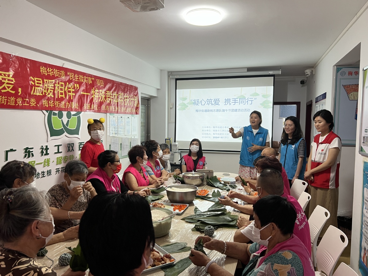 为进一步提升辖区志愿队伍的凝聚力,增强助残志愿者们的团队意识,6月7日,香洲区梅华街道公共服务办联合珠海市五洲公益社会服务中心,在梅华街道社工站开展“凝心筑爱·携手同行”助残志愿队端午节团建活动,吸引20余名志愿者参与。