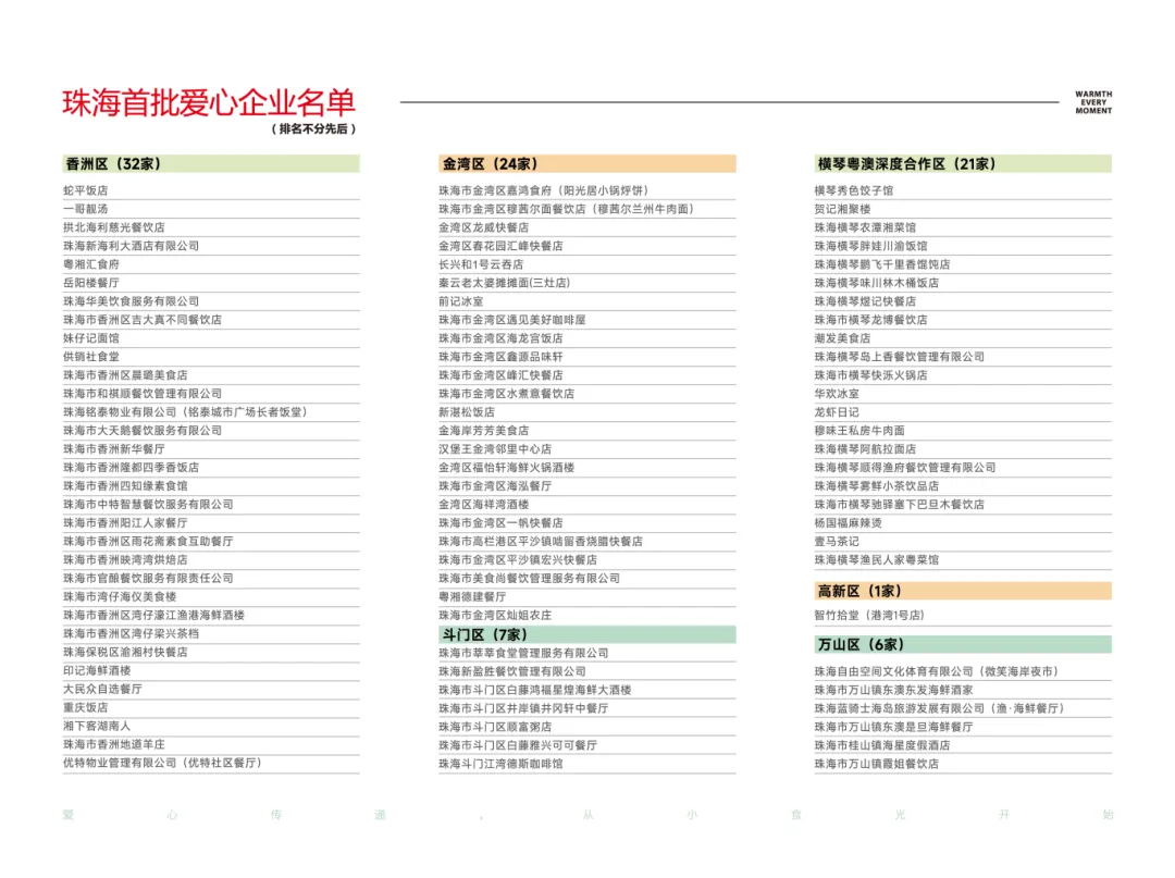 珠海是一个有爱心的城市,市民政局联合全市各区各镇(街)广泛发动辖区内的餐饮企业,打造珠海“小食光”爱心餐社会救助项目,为临时遇困的群众提供免费爱心餐。